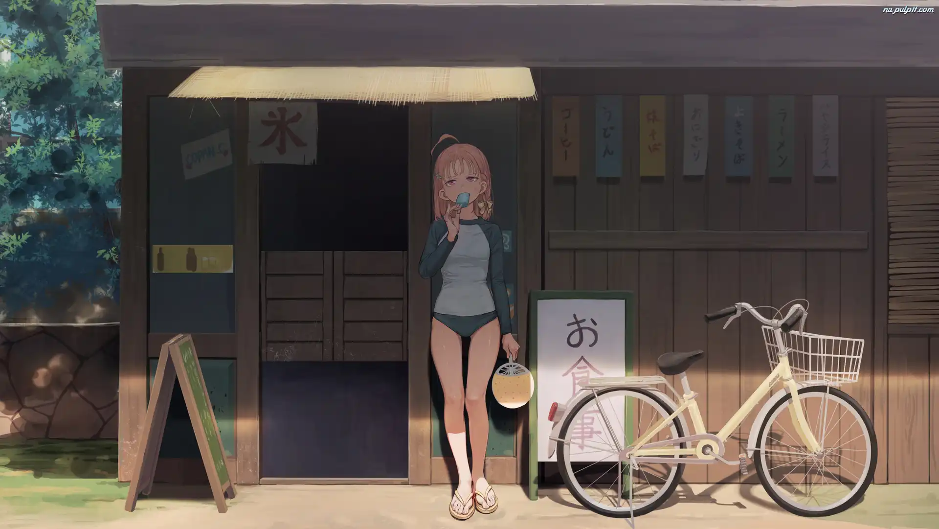 Dziewczyna, Upał, Rower, Anime, Wachlarz, Lody, Lato, Dom Na Pulpit