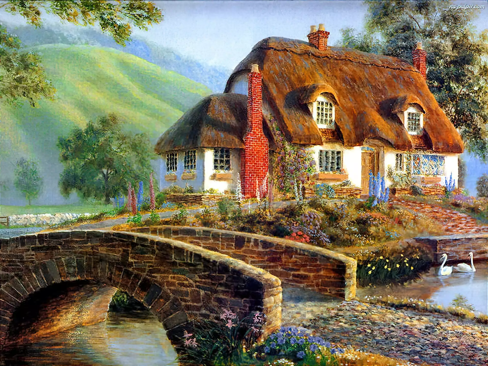 Rzeka, Francja, Most Woda, Łabędź, Niebieska Basen, Posiadłość, Góry, Wiata Domek, Mgła, Niemcy, Bavaria, Góry Zieleń, Dom, Jezioro Podpory, Most, Betonowe Domy, Włochy, Wenecja Most, rzeka Joyeusetés, Gauguin, Paul Arearea Wawel, Kraków, Wisła Rzeka, Wodospad, Las Odbicie, Łabędzie, Zakochane, Dwa, Jezioro Cygnus Mostek, Krzewy, Zielone, Ogród, Drzewa