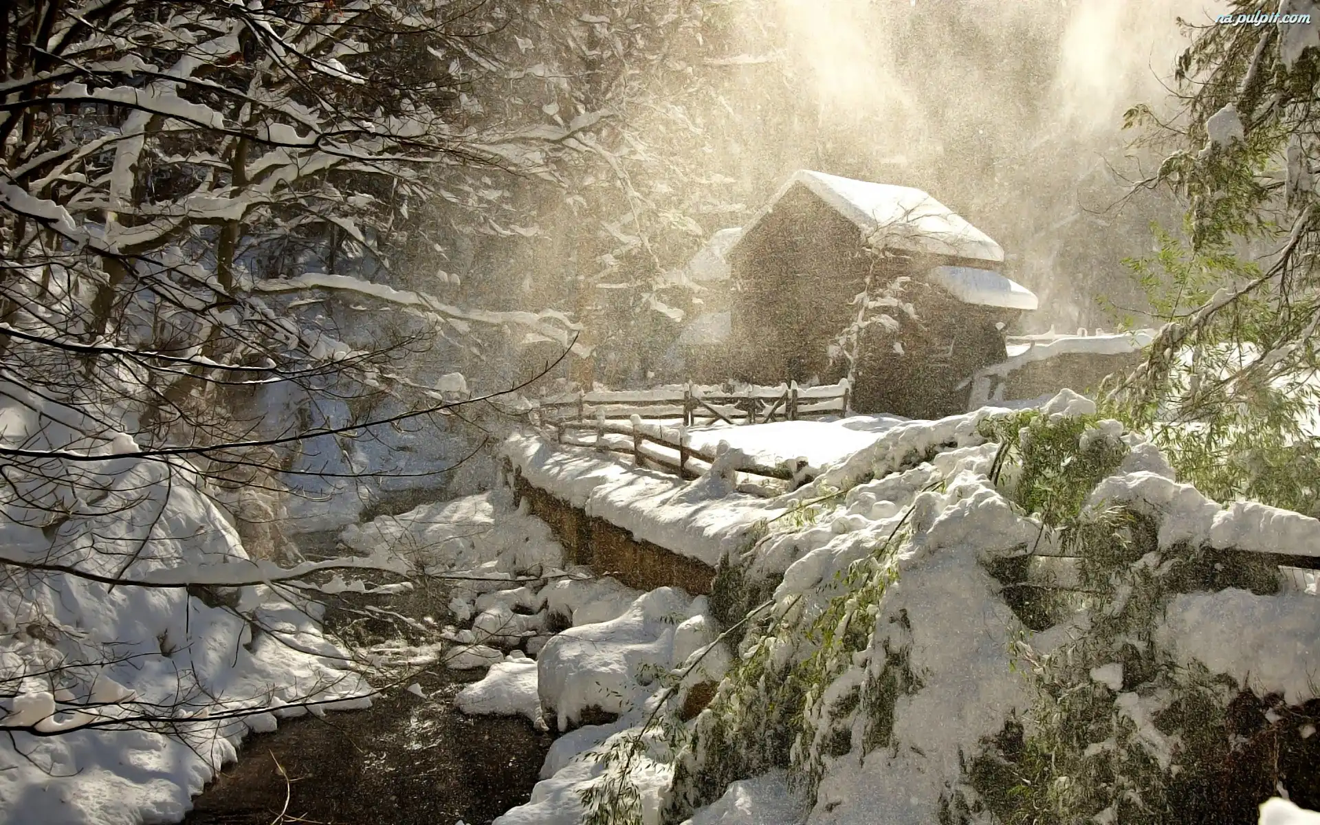 Śnieg, Rzeka, Zima, Dom, Padający Na Pulpit