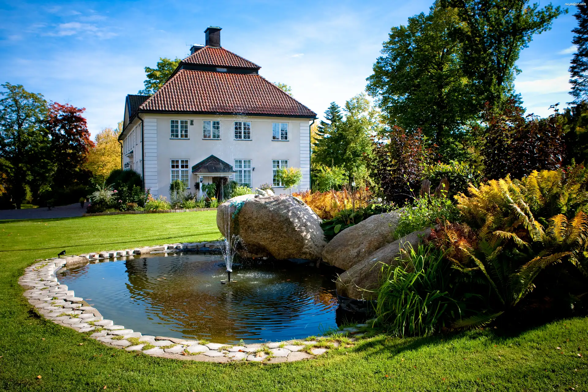 Drzewa, Domy, Kamienie, Rzeka, Kościół Miasteczko, Grafika Palmy, Dom, Witraże Rzeka, Kamienny, Domy, Most Chatka, Laos, Rzeka, Czółna Fontanny, Peterhof, Rosja, Wielki Pałac Budowle, Alpy, Dolomity, Góry, Białe Fontanna, Patio Ogród, Japoński Basen, Posiadłość, Góry, Wiata Mostek, Krzewy, Zielone, Ogród, Drzewa Dom, Kwitnąca, Wiśnia Kwiatki, Ogród, Domek, Las, Różne Dom, Kwiaty, Ptak, Fontanna