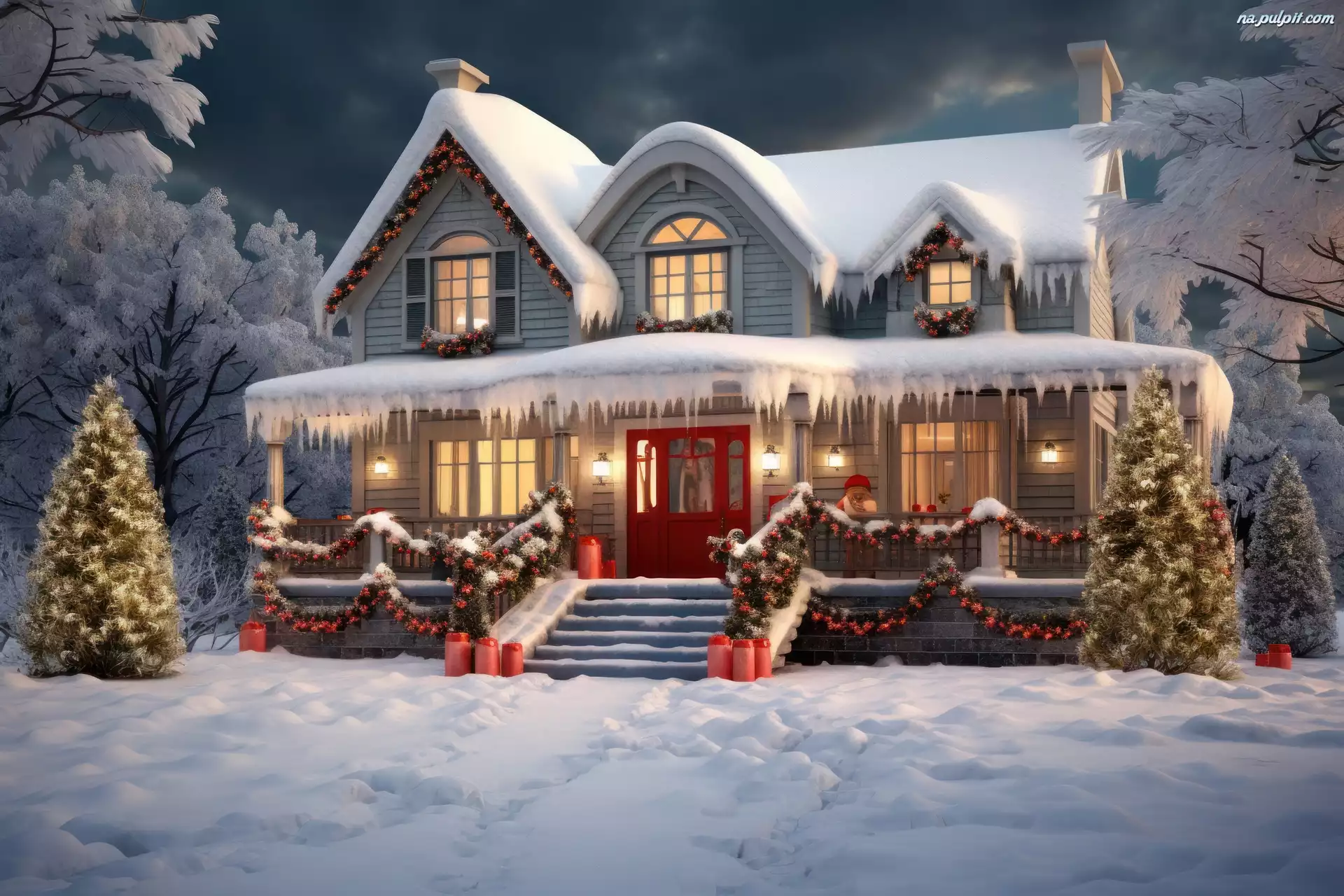 Boże Narodzenie, Zima, Dom, Choinka, Świąteczny, Grafika Na Pulpit