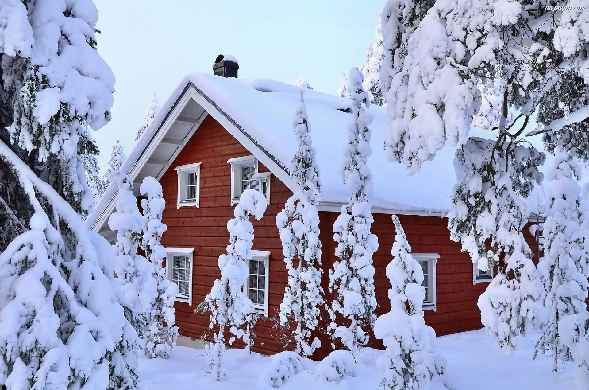 Dom, Ośnieżone, Zima, Drzewa Na Pulpit