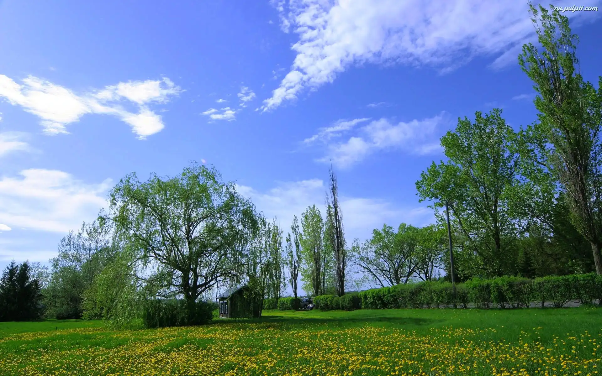 Domek, Drzewa, Droga, Łąka Na Pulpit