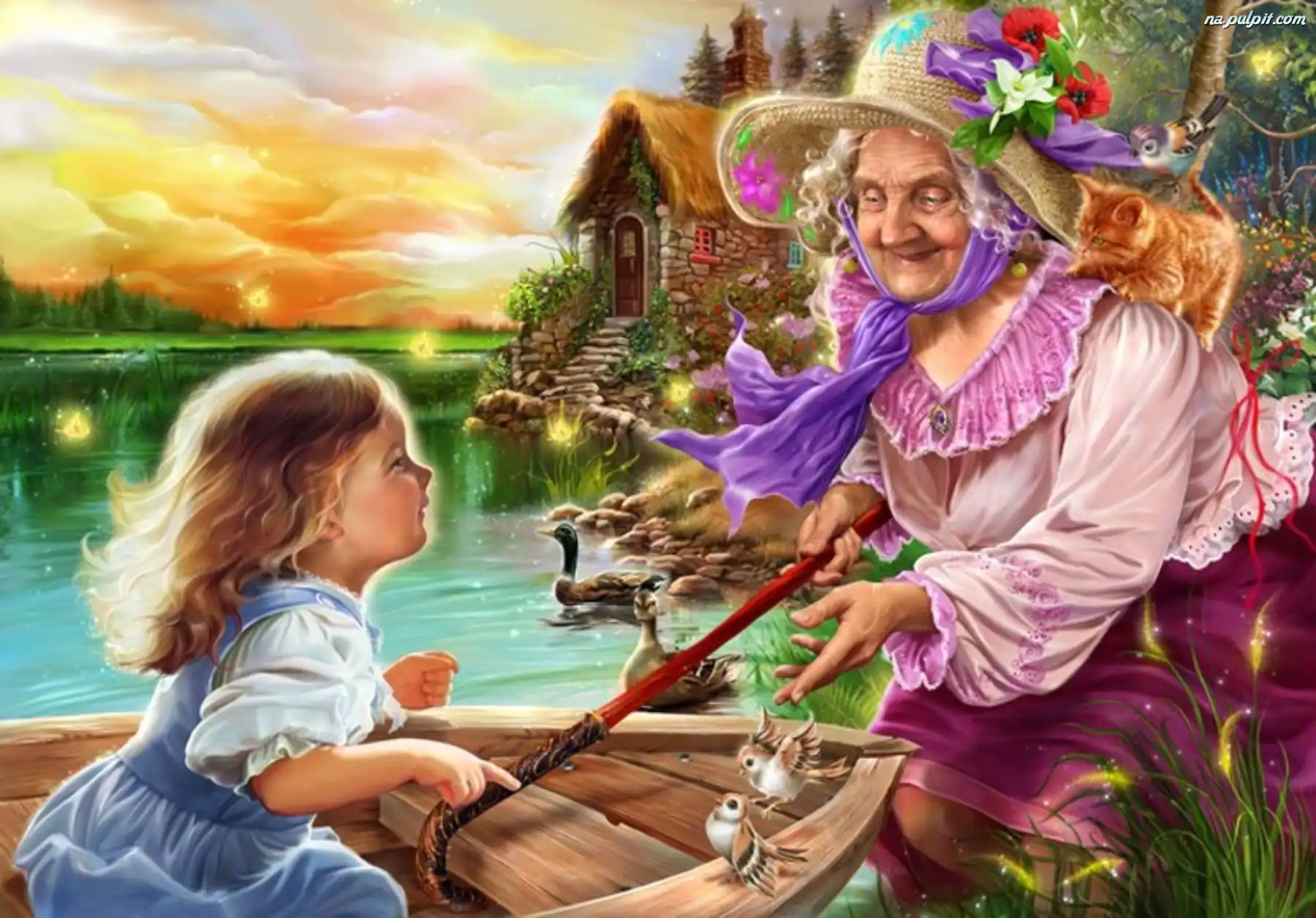 Domek, Zwierzęta, Babcia, Dziecko, Woda Na Pulpit