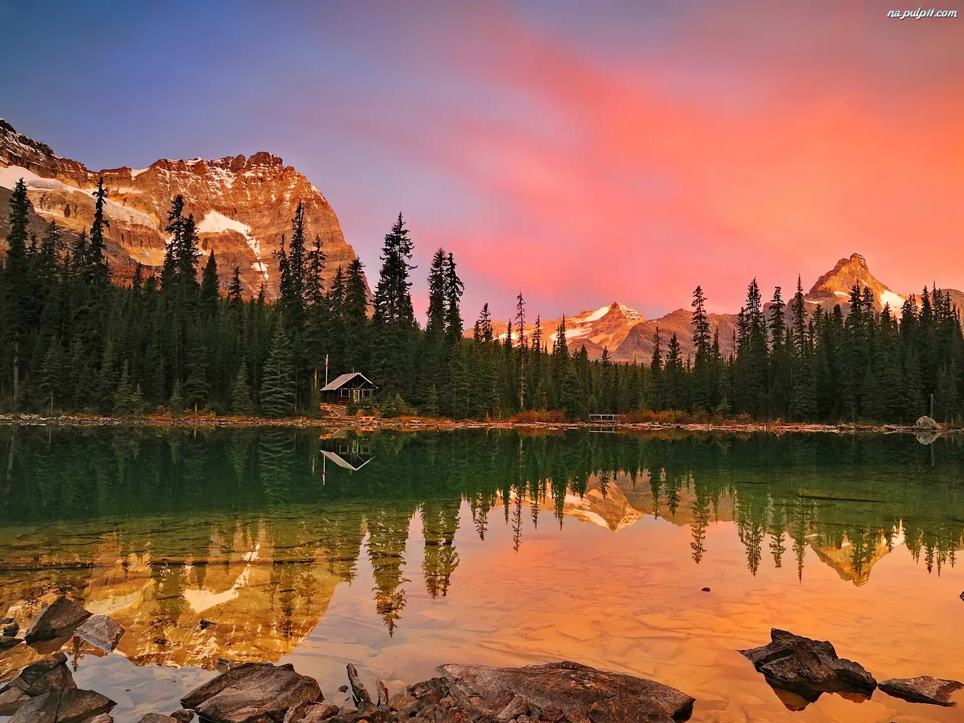 Domek, Jezioro, Góry, Drzewa Na Pulpit
