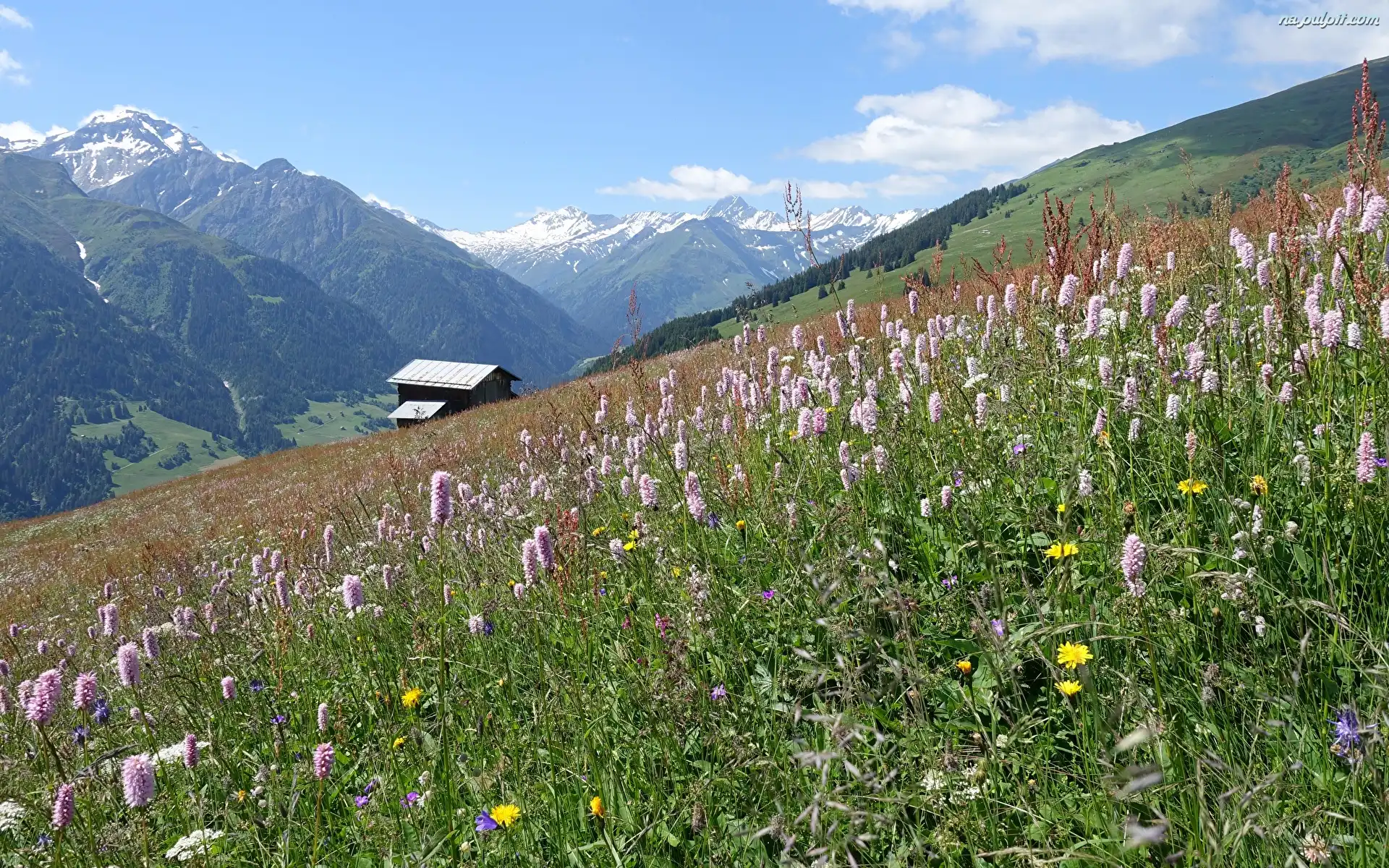 Domek, Kwiaty, Wzgórze, Góry, Łąka Na Pulpit