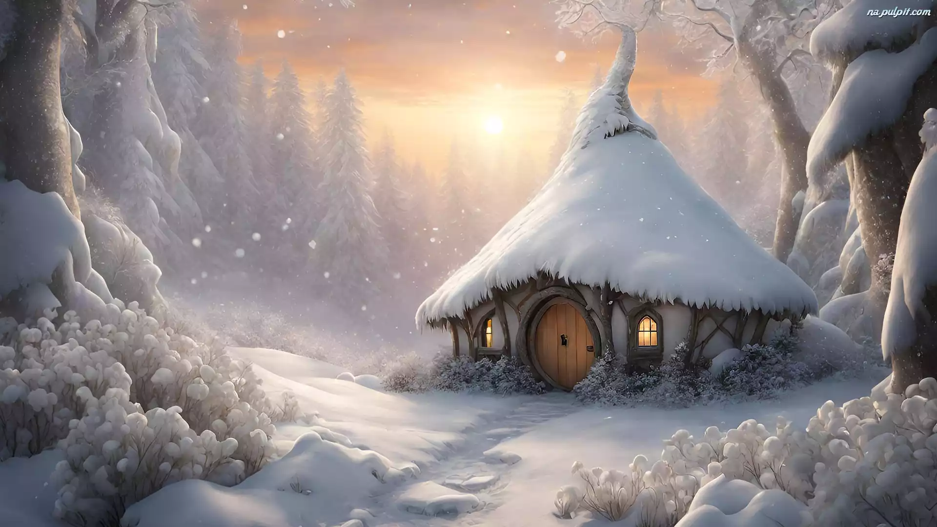 Śnieg, Domek, Hobbita, 2D, Zima Na Pulpit