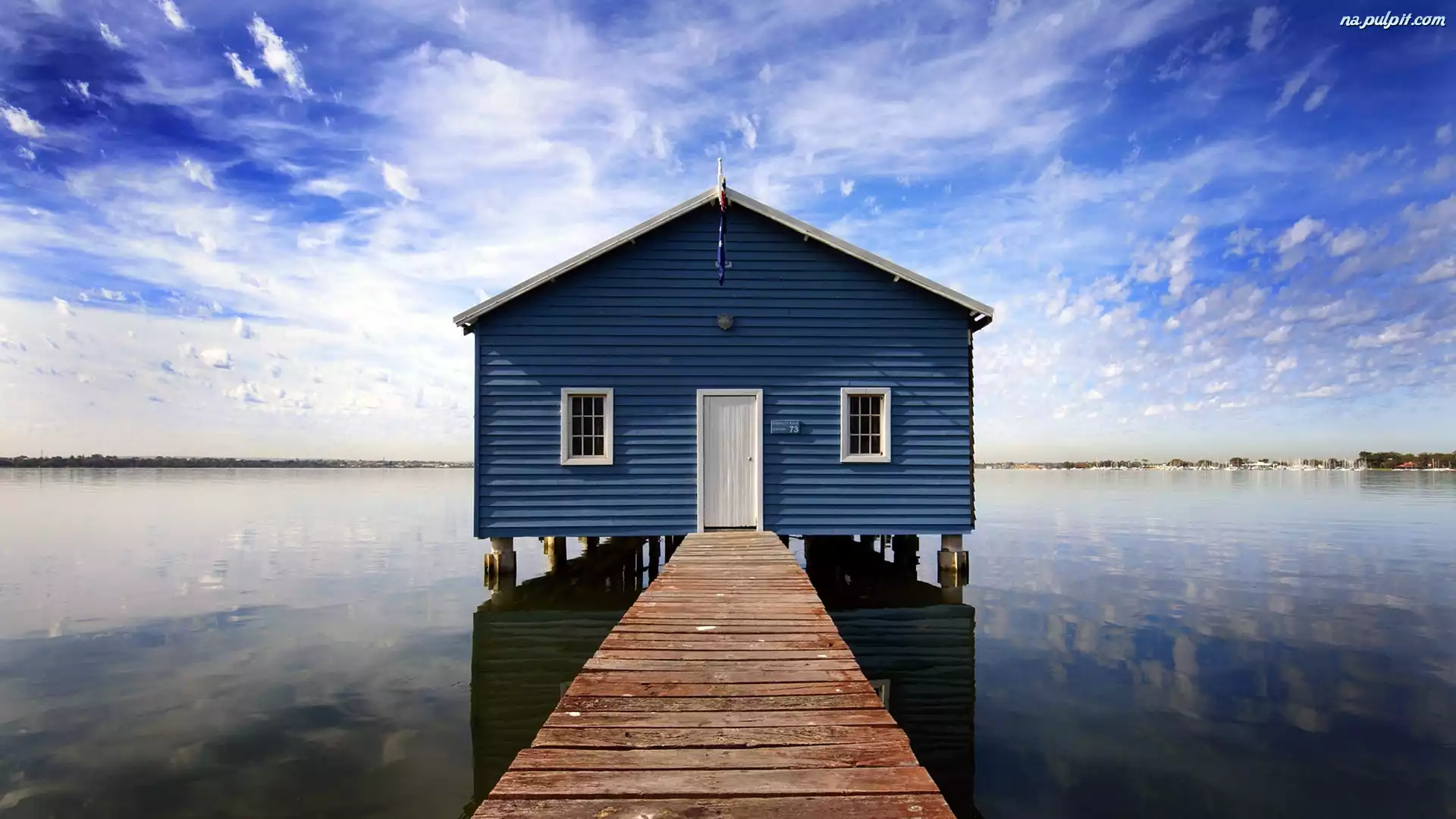 Domek, Pomost, Jezioro, Niebieski Na Pulpit