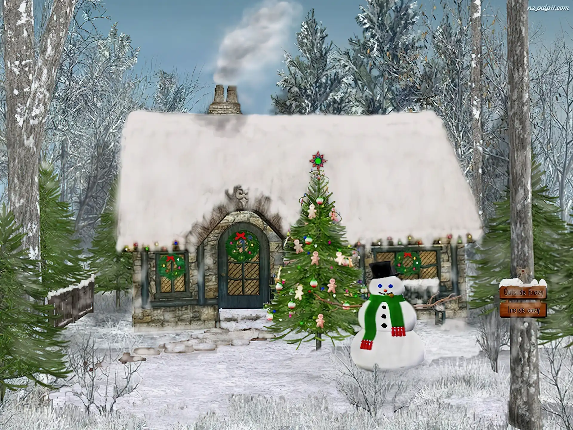 domek, Boże Narodzenie, bałwanek Na Pulpit