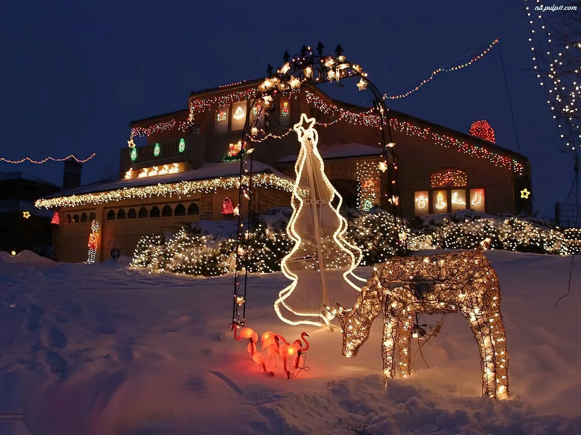domek, Boże Narodzenie, lampki