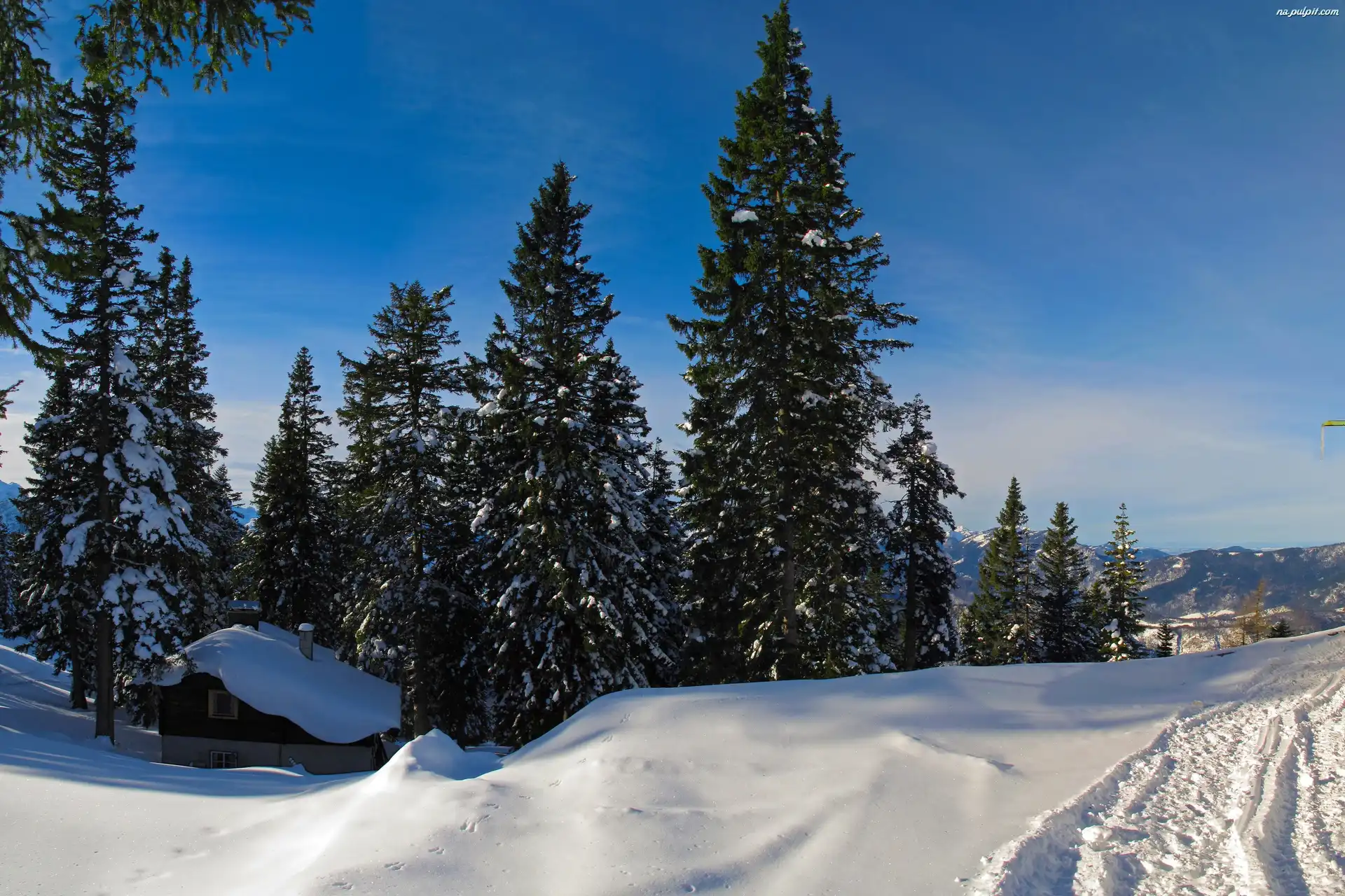 Kamienie, Góry, Jezioro Oszronione, Drzewa Zima, Drzewo Jezioro, Góry, Chmurki Plaża, Fale, Góry, Morze Góra Góra Zima, Rzeka Góra Góry, Krzewy palmy, Chmura, Góry, Niebo Góry, śnieg domki, Góry, dwa drzewa skały, Niebo