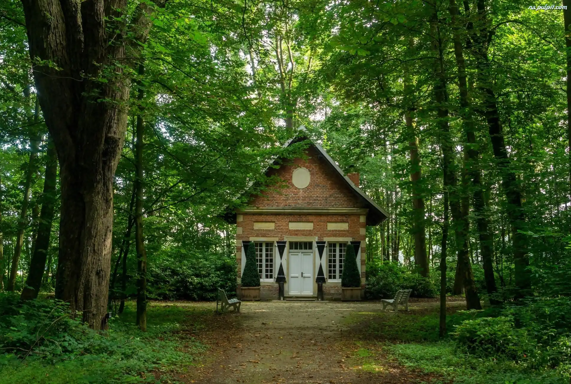 Domek, Zielone, Drzewa, Alejki, Park, Ławki Na Pulpit
