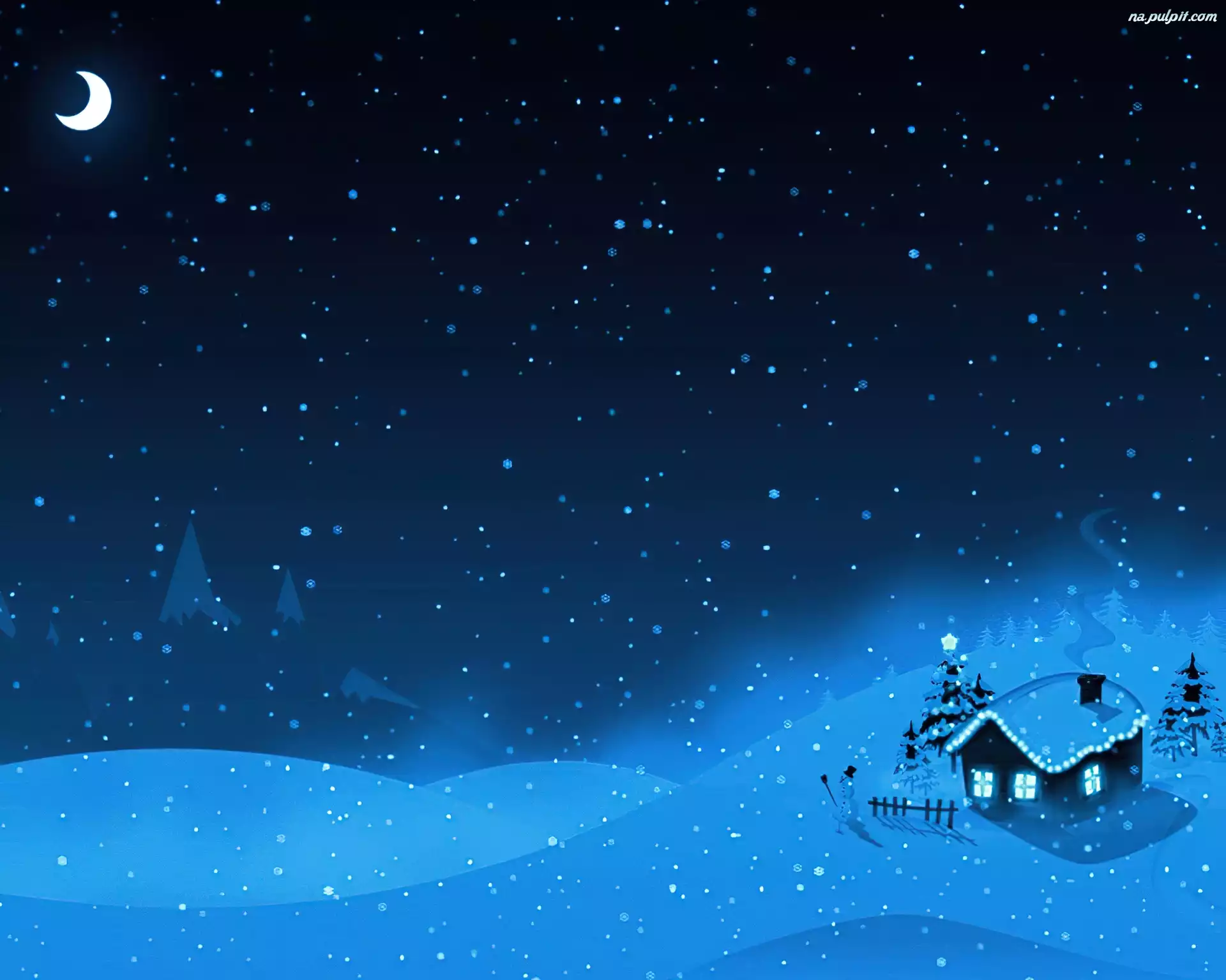 Domek, Śnieg, Zima, Noc Na Pulpit