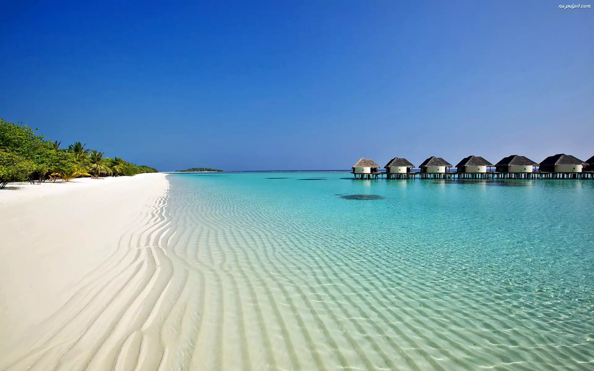 Domki, Roślinność, Malediwy, Hotelowe, Atol, Plaża Na Pulpit
