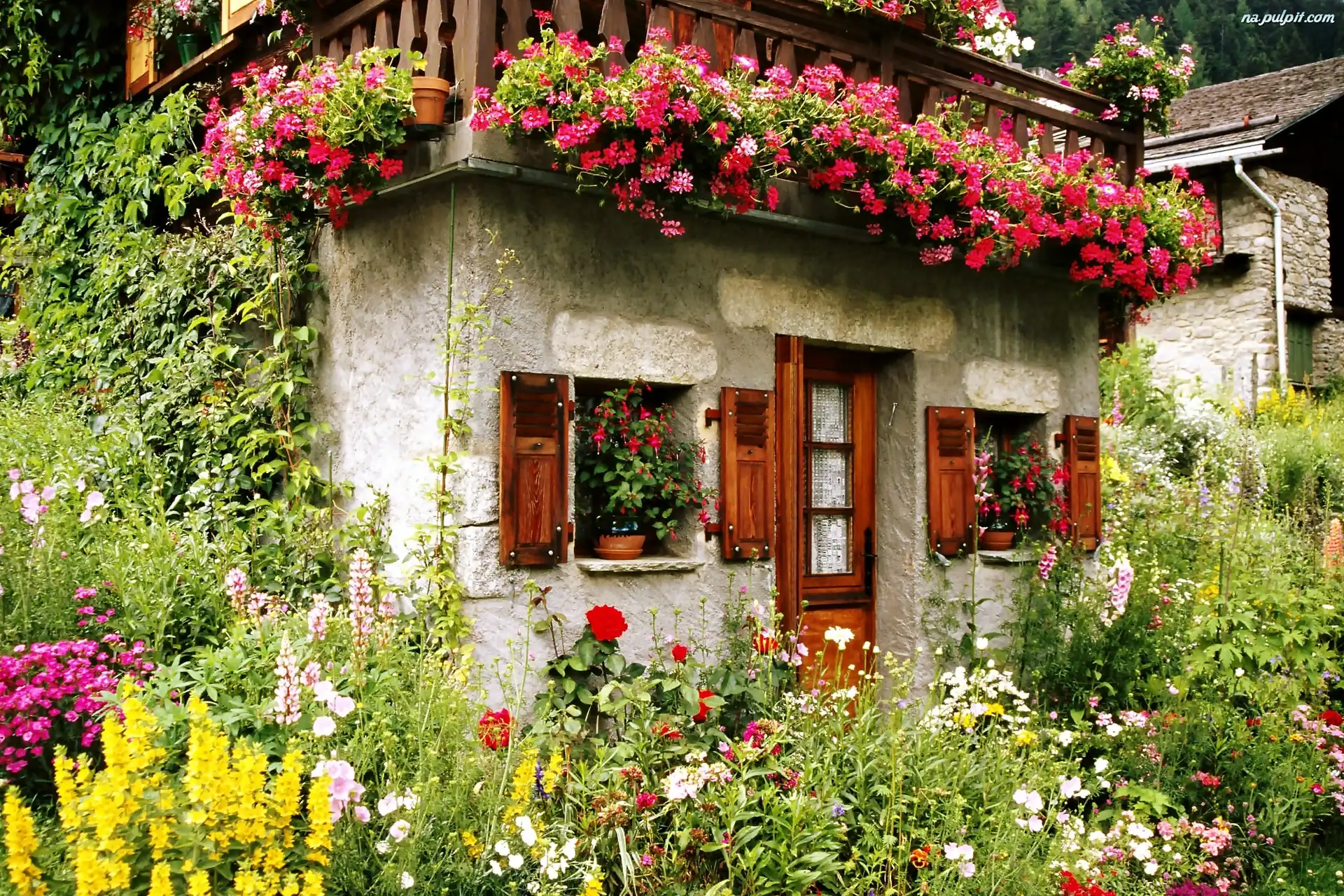 Domki, Bluszcz, Pelargonie, Ogródek, Kamienne, Kwiatowy Na Pulpit