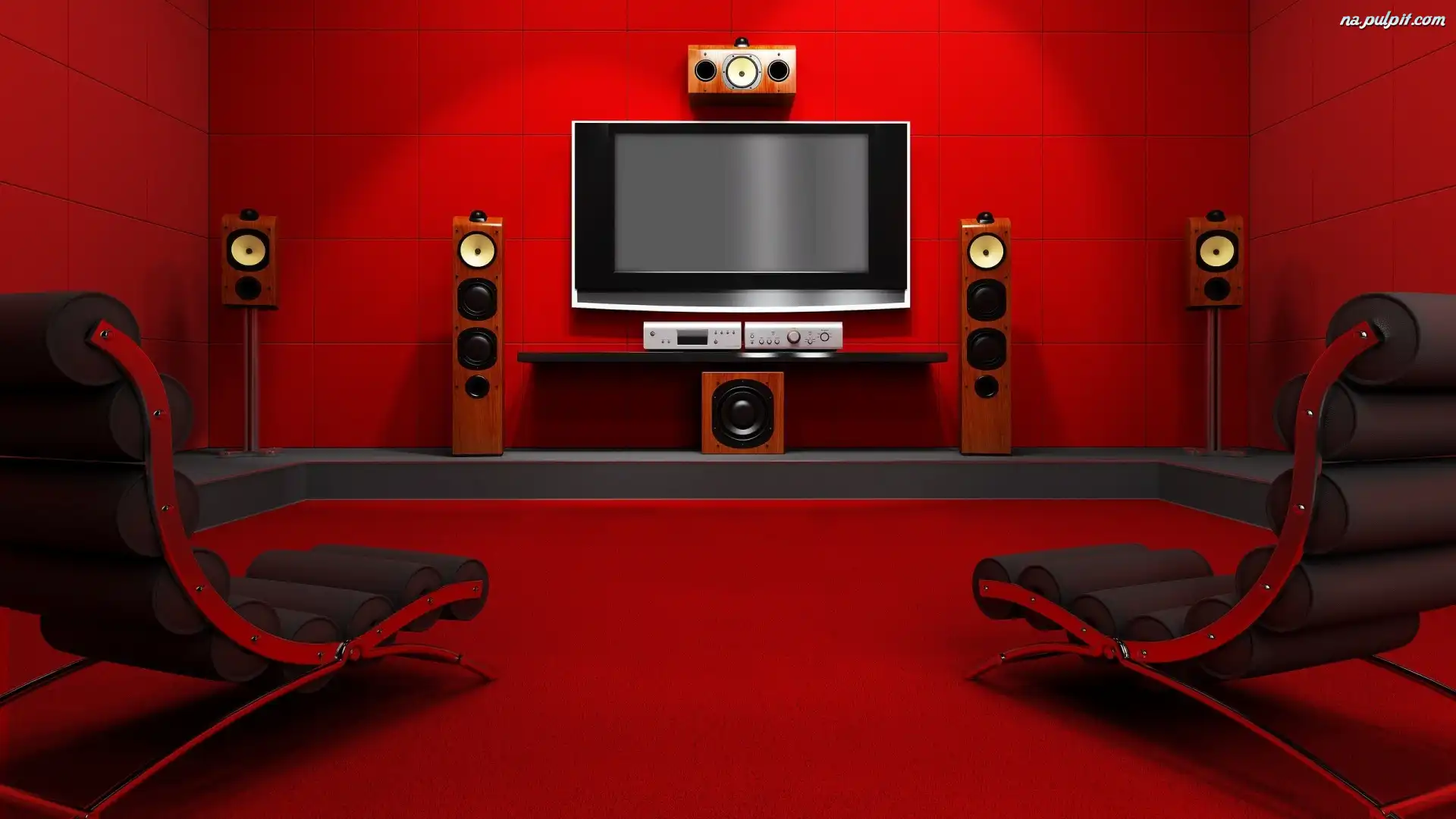 Pokój, Domowe, Audio-Video, Czerwony, Wnętrze, Kino Na Pulpit