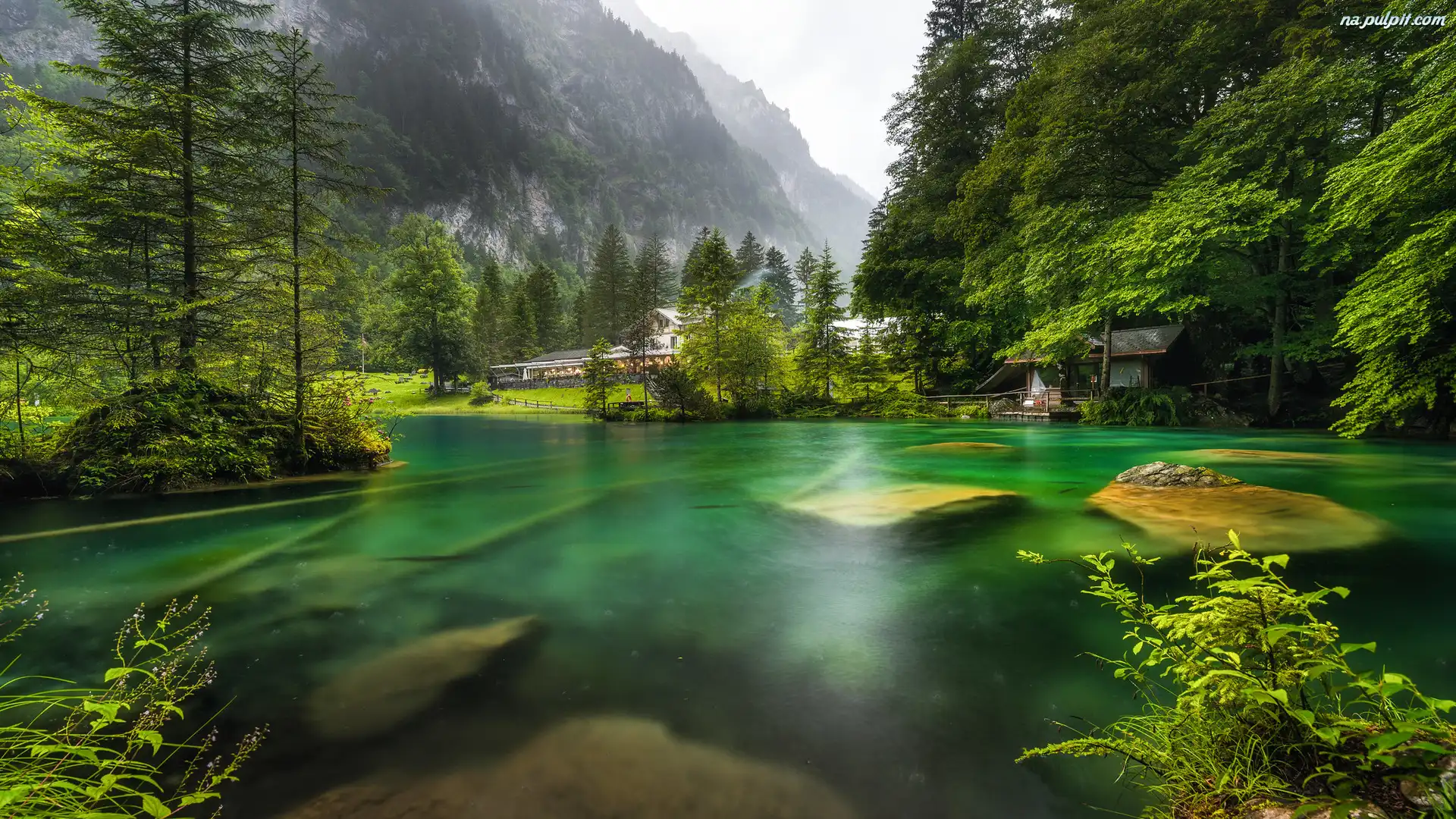 Kamienie, Kanton Berno, Jezioro Blausee, Las, Drzewa, Góry, Szwajcaria, Domy Na Pulpit