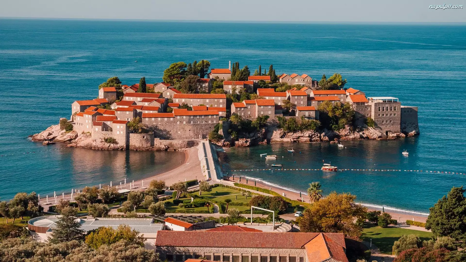 Wyspa św Stefana, Domy, Morze, Czarnogóra Na Pulpit