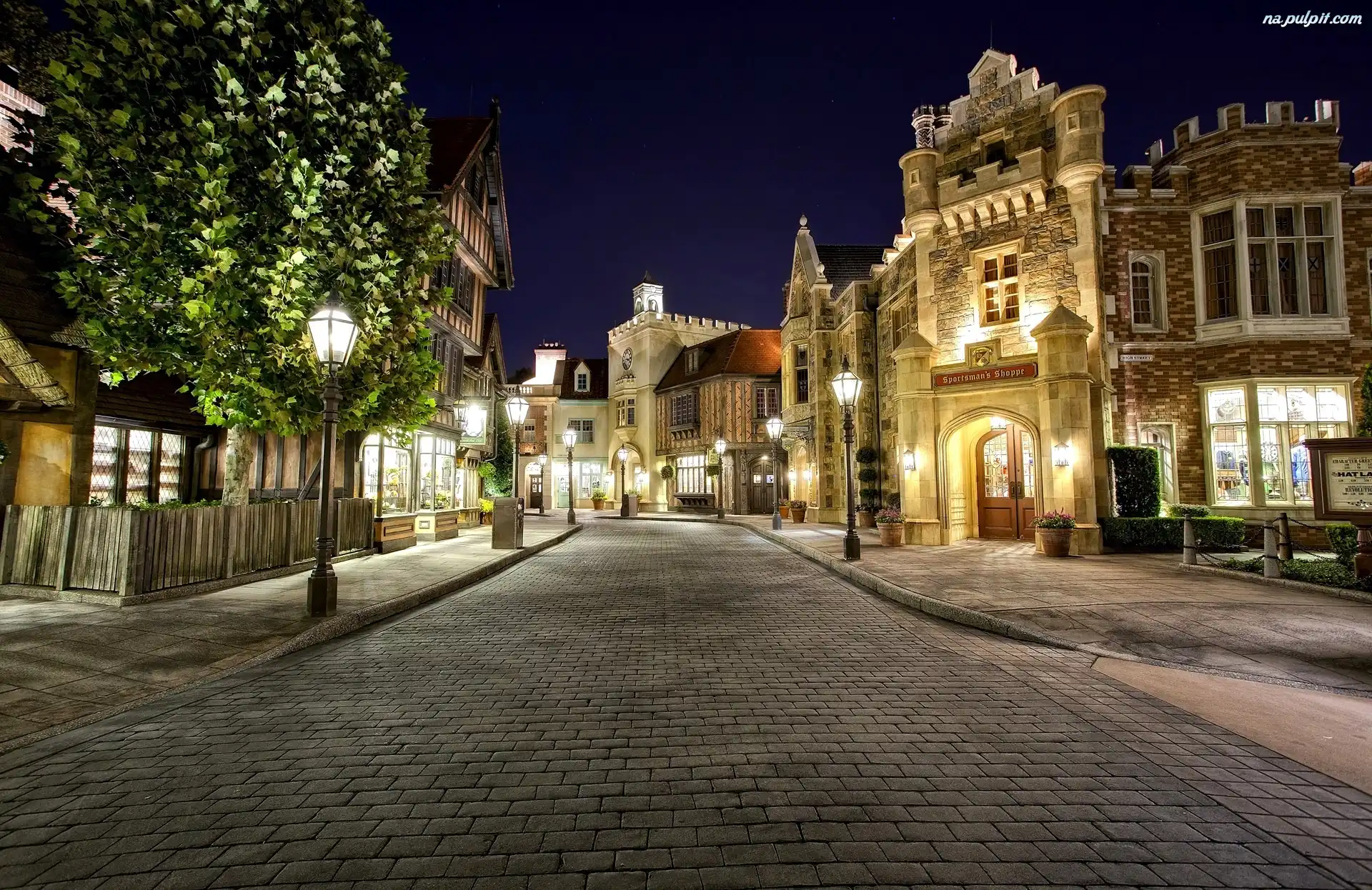 Kalifornia, Domy, Miasto, USA, HDR, Noc, Ulica, Disneyland Na Pulpit