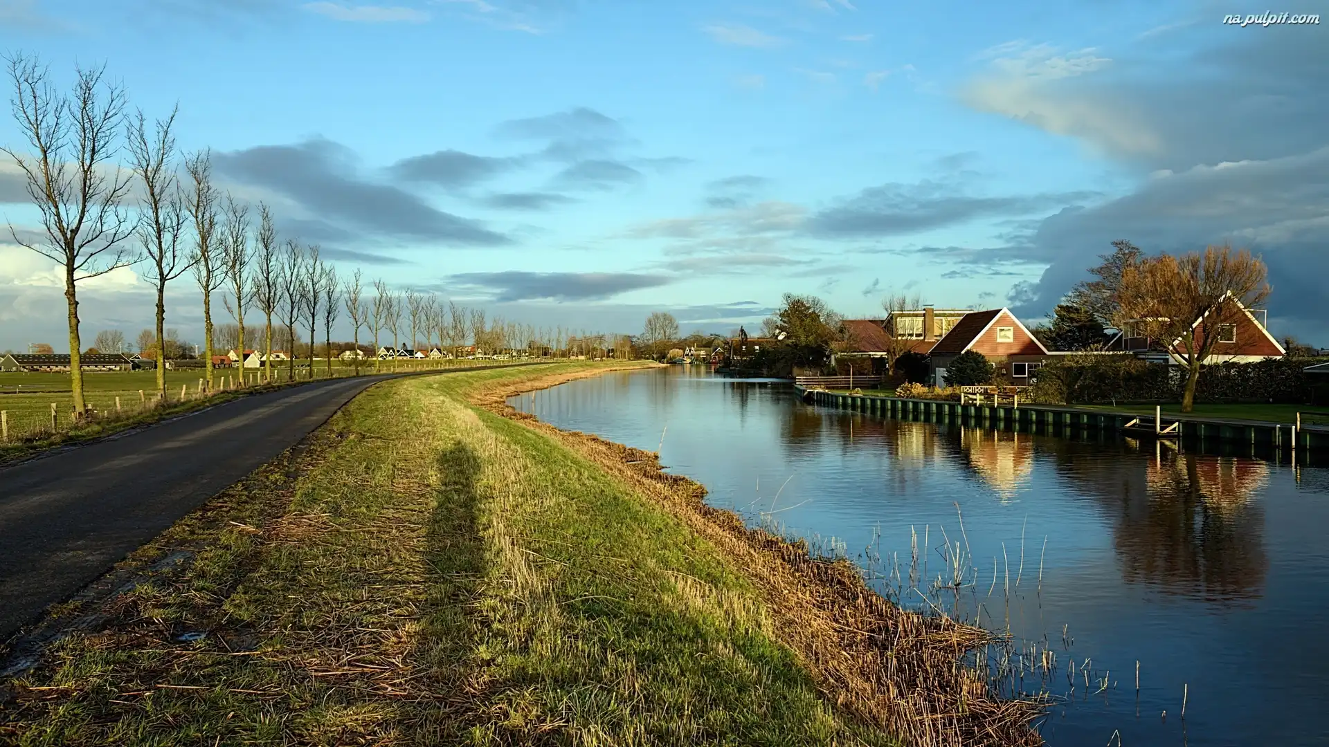 Domy, Drzewa, Droga, Rzeka Na Pulpit