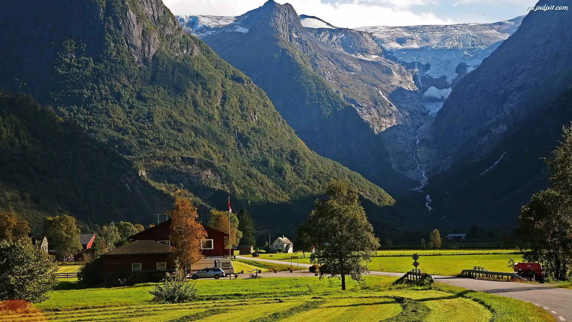 Domy, Droga, Góry, Zieleń Na Pulpit