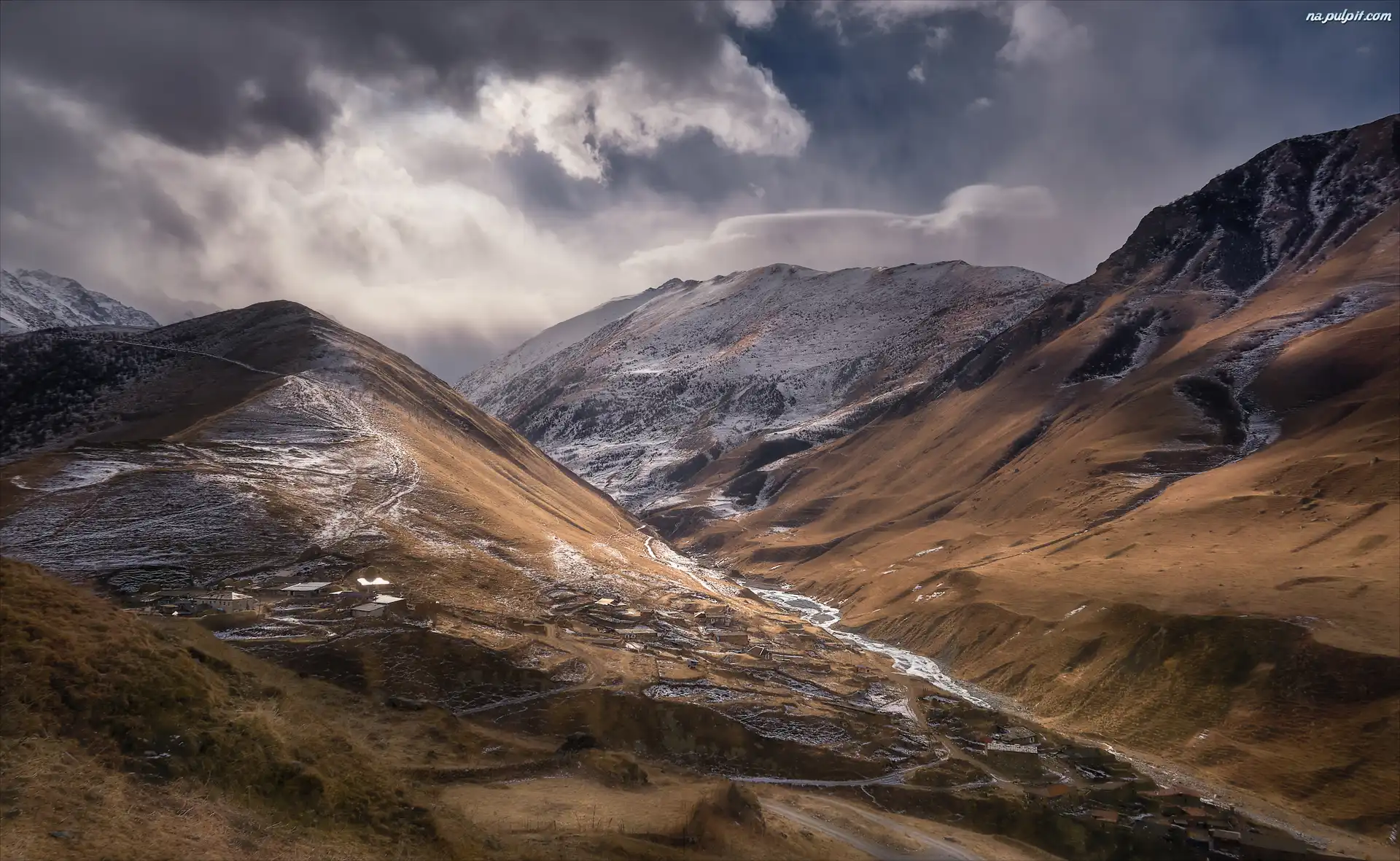 Domy, Chmury, Śnieg, Góry, Dolina Na Pulpit