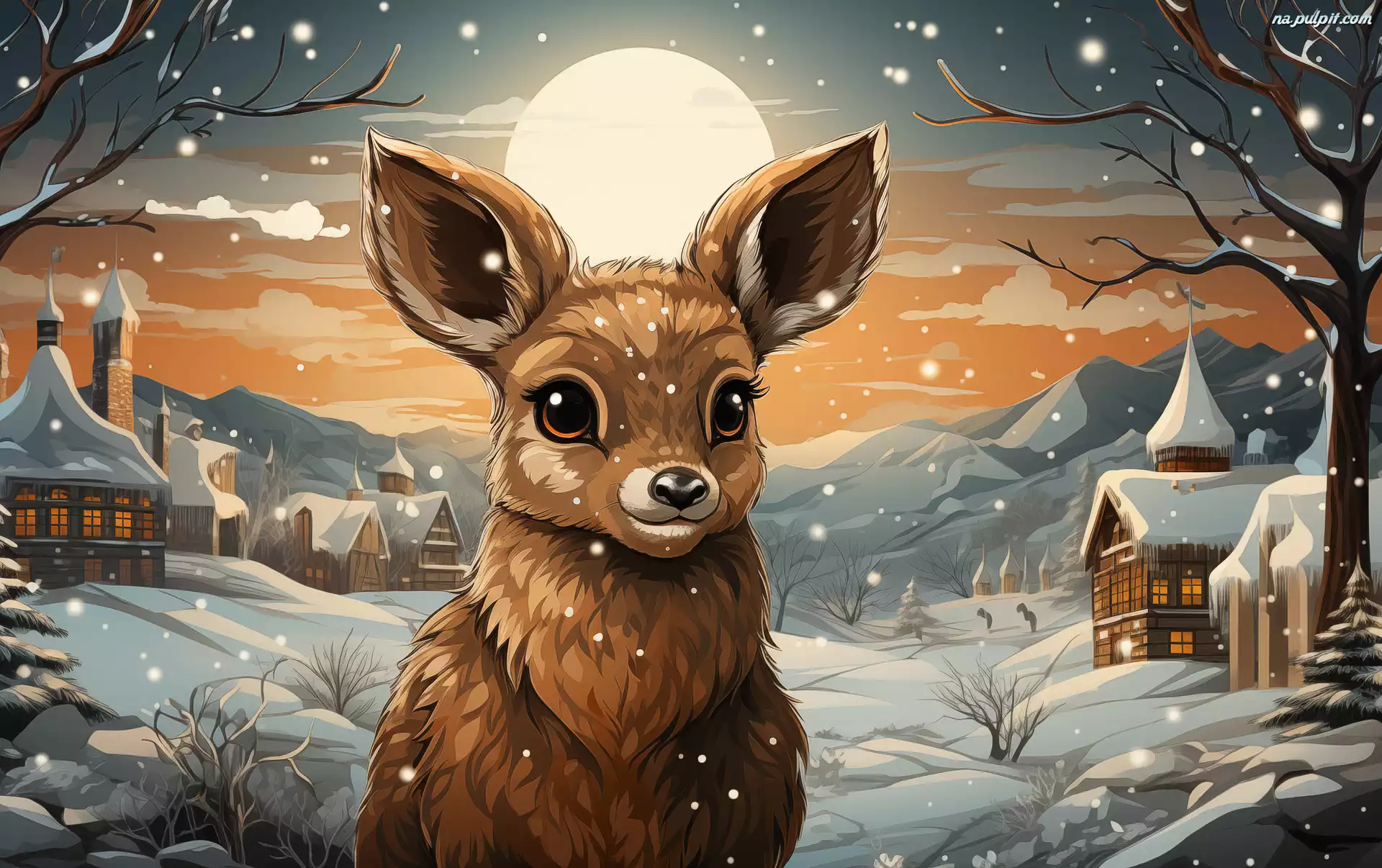 Góry, Zima, Jeleń, Domy, Młody, Grafika Na Pulpit