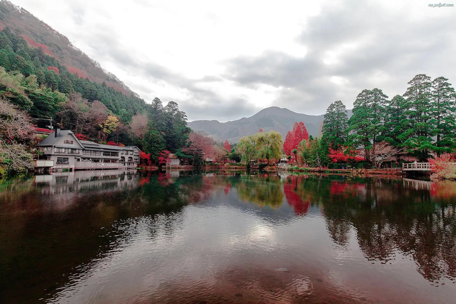 Domy, Lasy, Góry, Jezioro, Drzewa