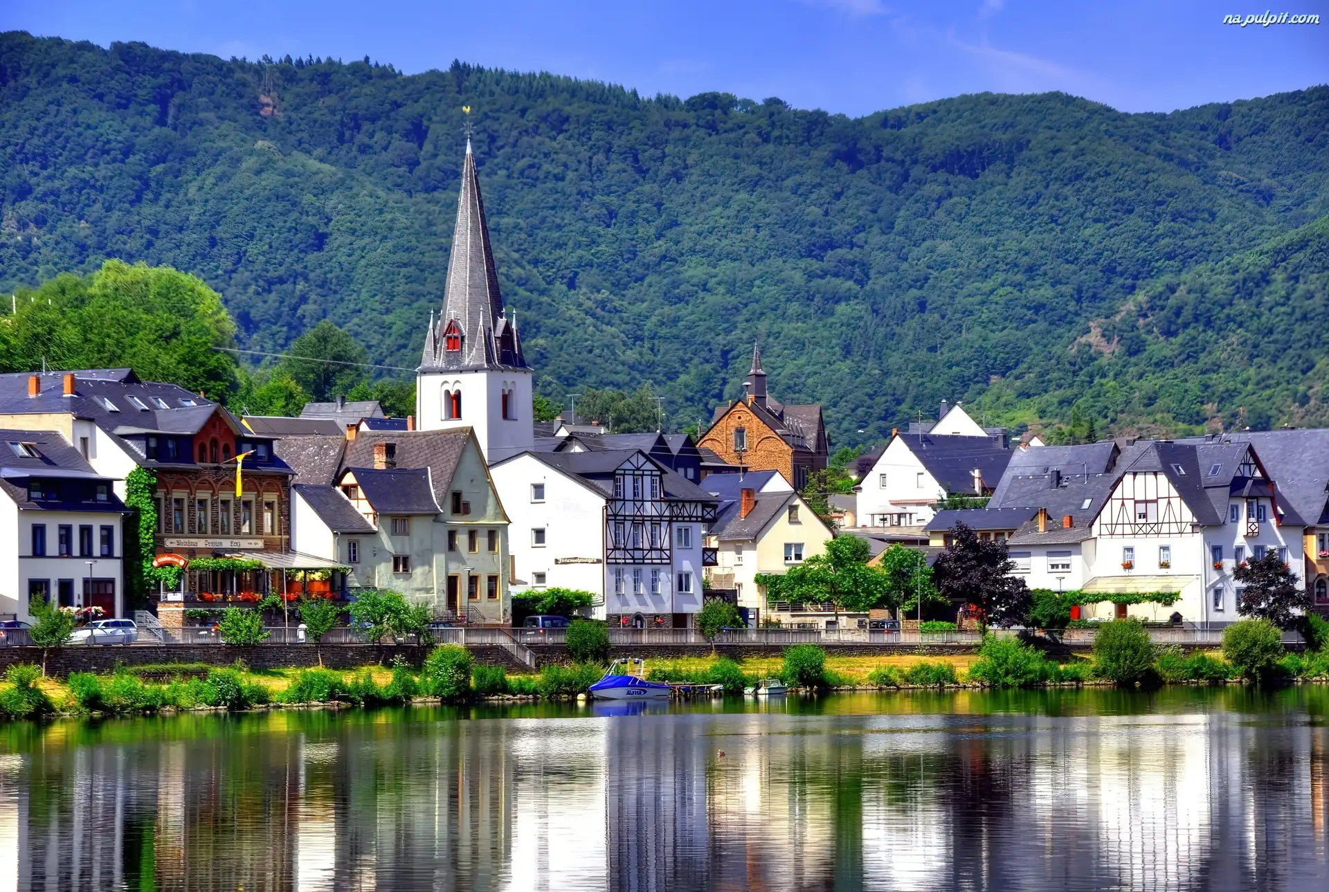 Las, Domy, Kościół, Miasteczko, Góry, Nad Mozelą Na Pulpit