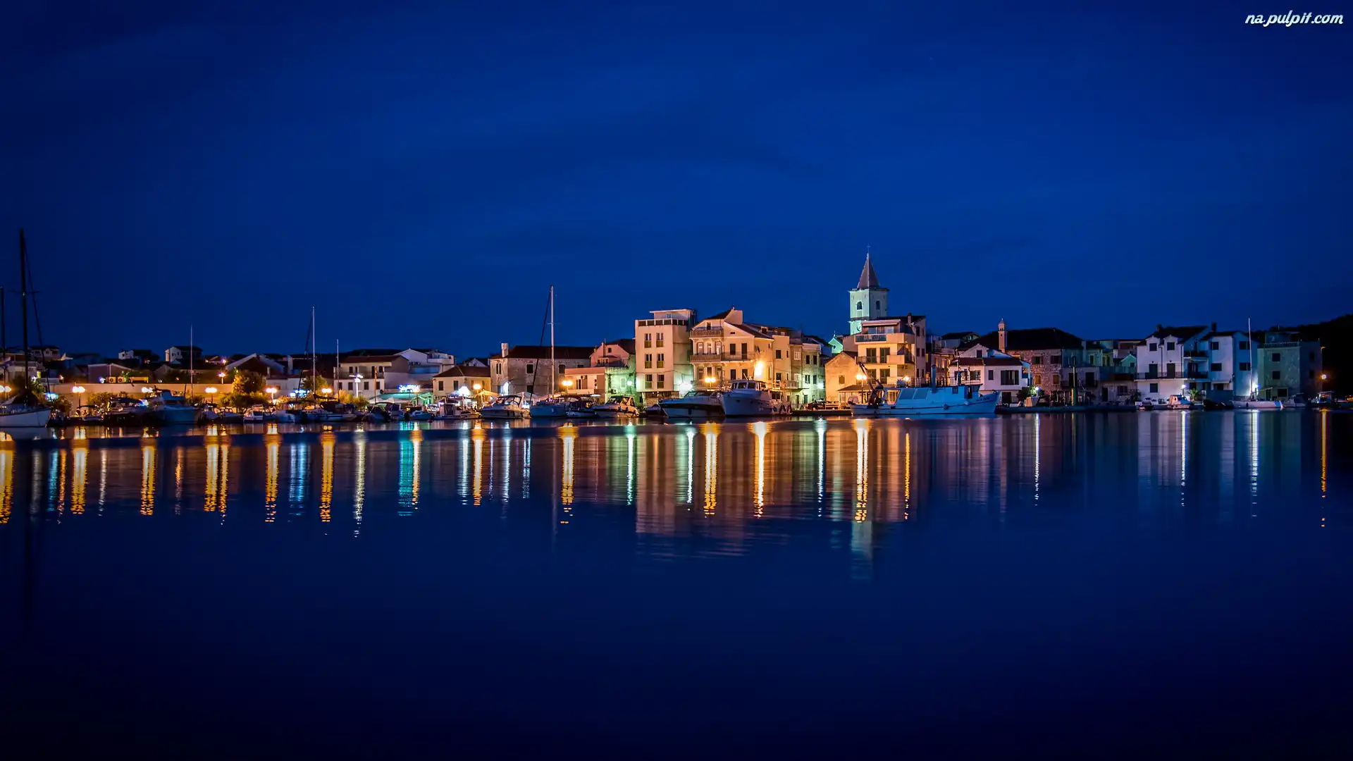 Domy, Noc, Chorwacja, Miasteczko, Oświetlone, Rogoznica Na Pulpit