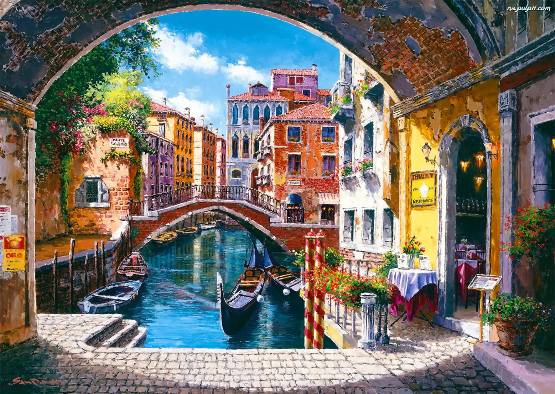 Chata, Opuszczona, Wiejska Hradczany, Most, Praga, Karola Domki, Brukowiec, Most, Rzeka Kalifornia, Most Luis Royo, Indianie Noc, Wenecja, Gondole Drewniany Most Domek, Zakochani, Słońca, Zachód, Jezioro Bariera, Millau, Wiadukt, Francja, Pylony Dom, Wenecja, Włochy Wenecja, Gondole, Pomosty Budynki, Woda, Łódź Betonowe, Schody Obrazu, Książka, Dziewczynka, Reprodukcja