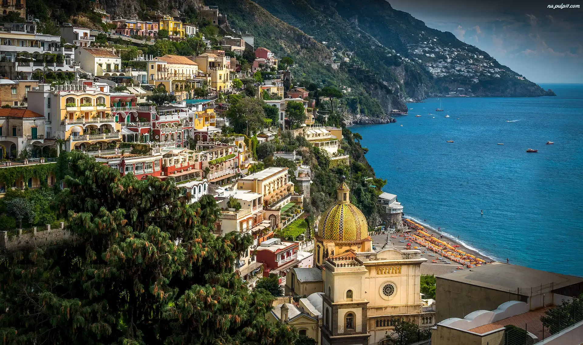 Domy, Miasteczko Amalfi, Włochy, Wybrzeże Na Pulpit