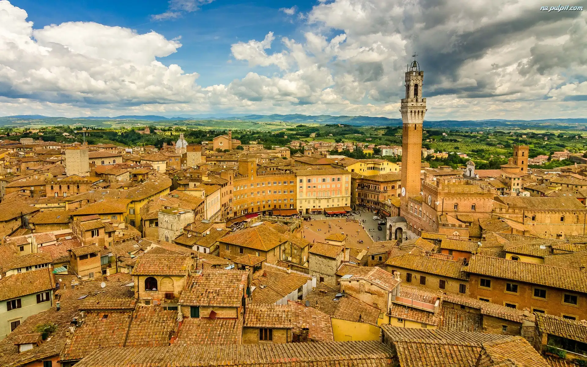 Włochy, Domy, Toskania, Miasta, Panorama, Wieża, Siena Na Pulpit
