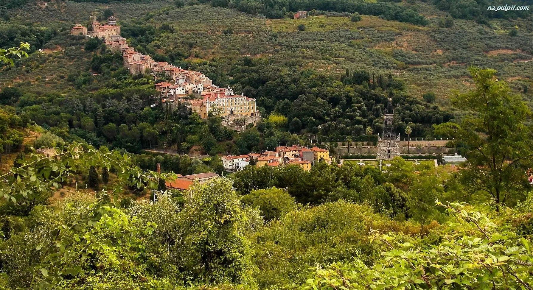 Domy, Drzewa, Wzgórza, Roślinność Na Pulpit