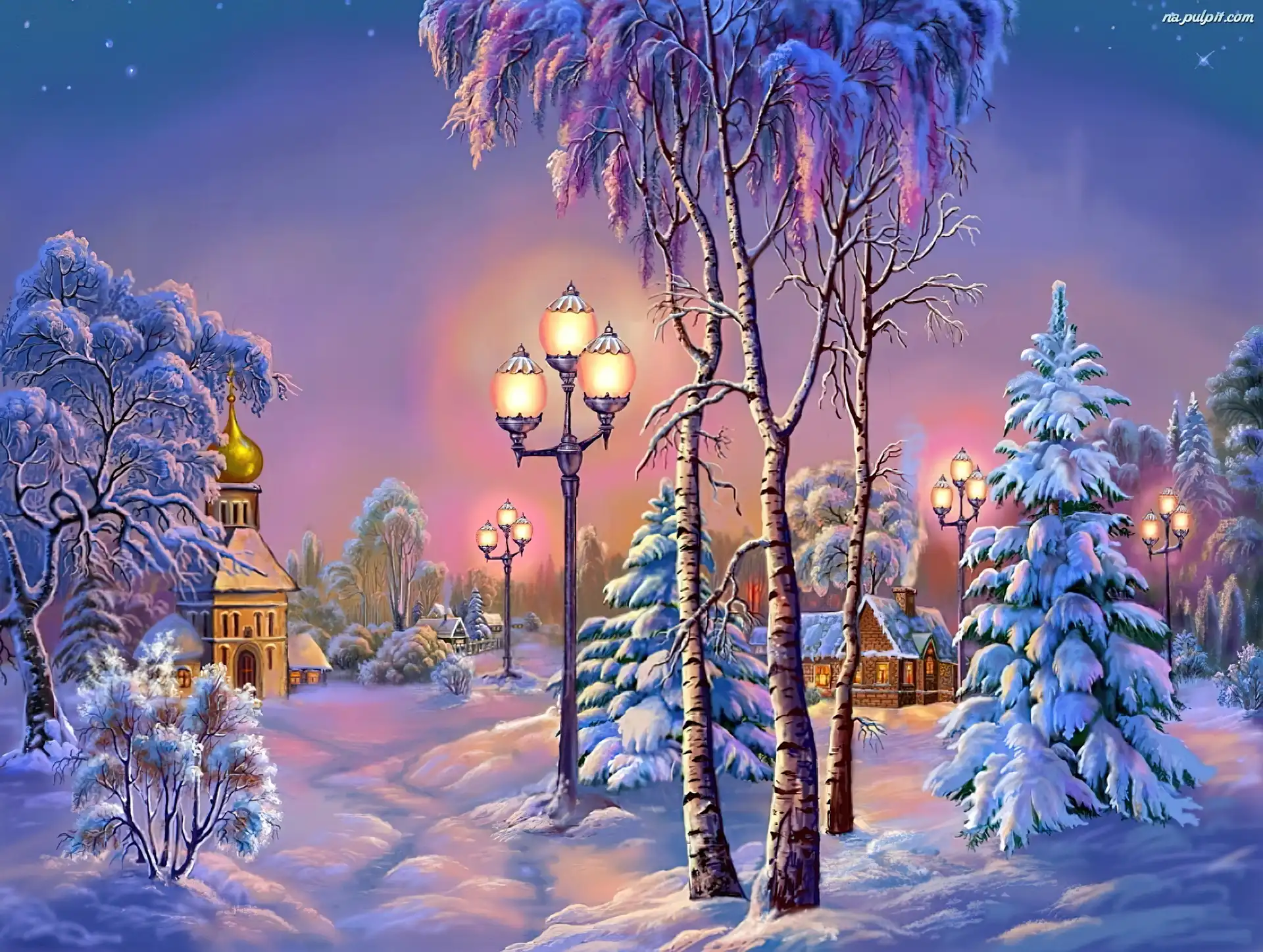 Domy, Latarnie, Zima, Kościół Na Pulpit