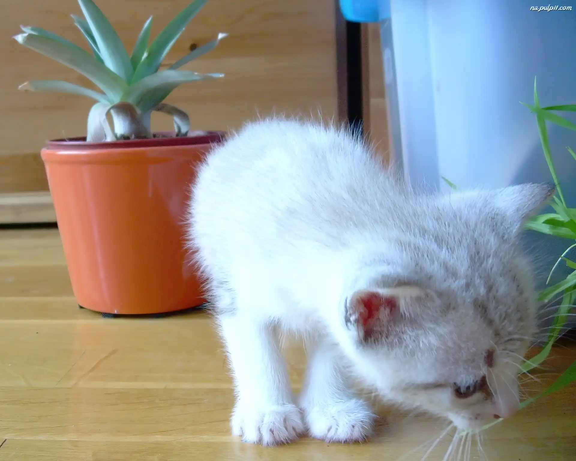 Doniczka, Biały, Mały, Kotek Na Pulpit