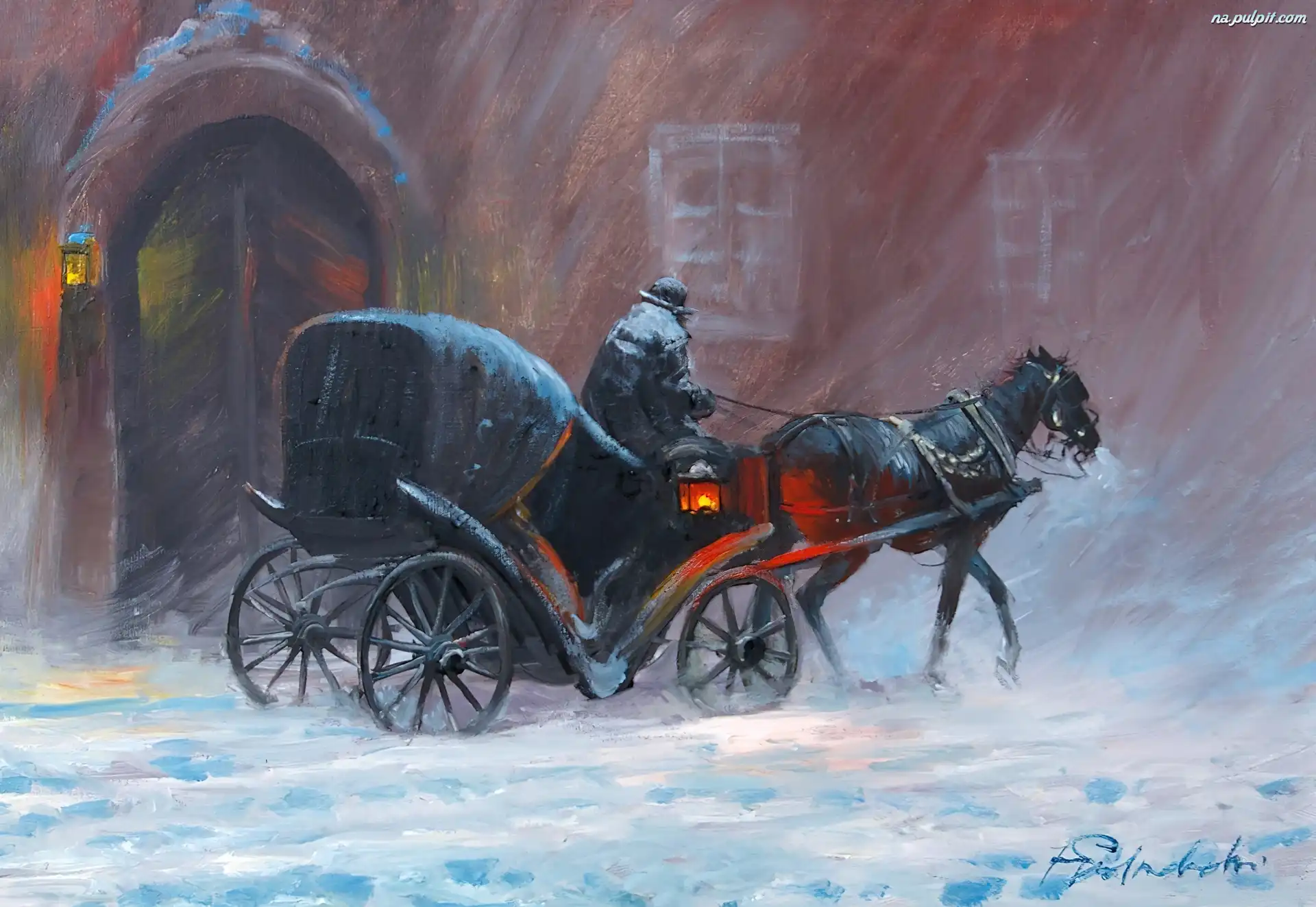 Obraz, Dorożka, Koń Na Pulpit