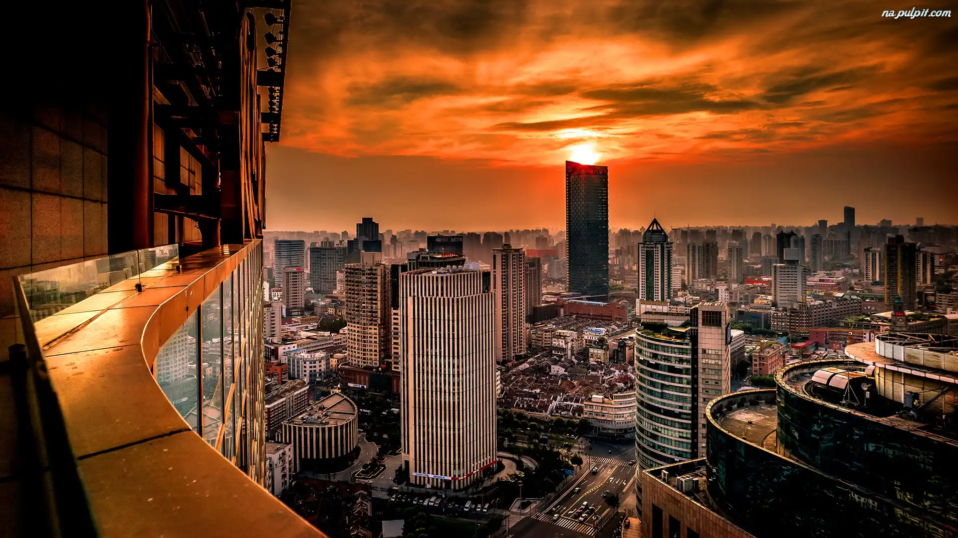 Drapacze chmur, Szanghaj, Zachód słońca Na Pulpit