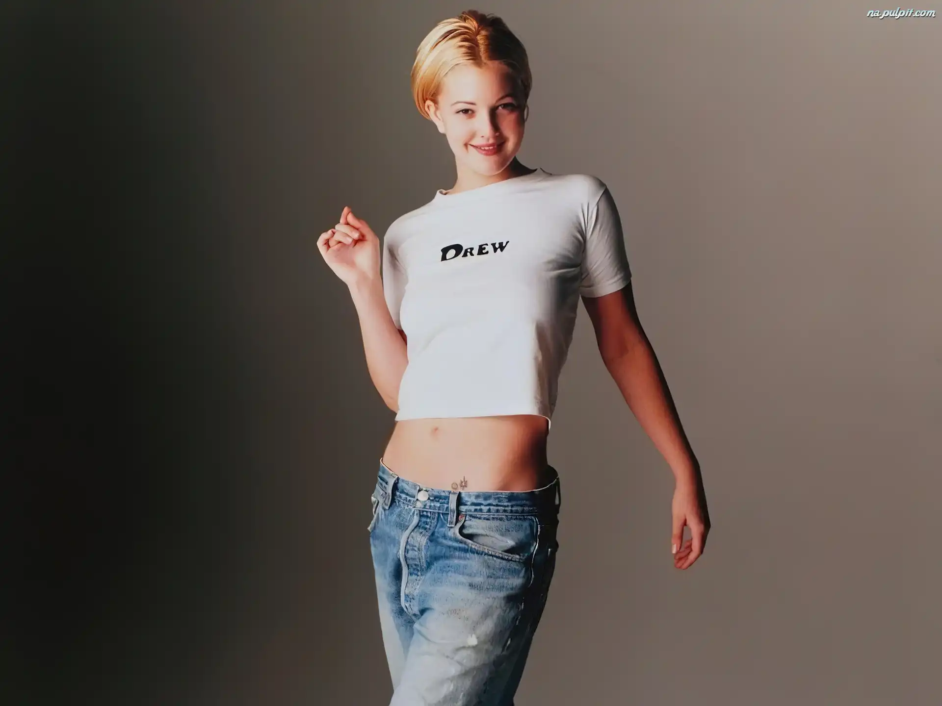 Drew Barrymore, biały T-shirt