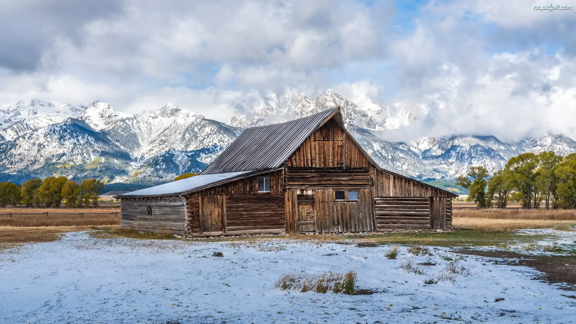 Park Narodowy Grand Teton, Drewniana, Chata, Góry, Wyoming, Stany Zjednoczone, Teton Range, Stodoła, Drzewa Na Pulpit |