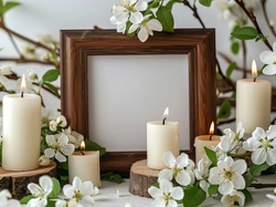 Kłody, Ramka, Gałązki, Świece, Kwiaty, Białe, Drewniana, Drewniane