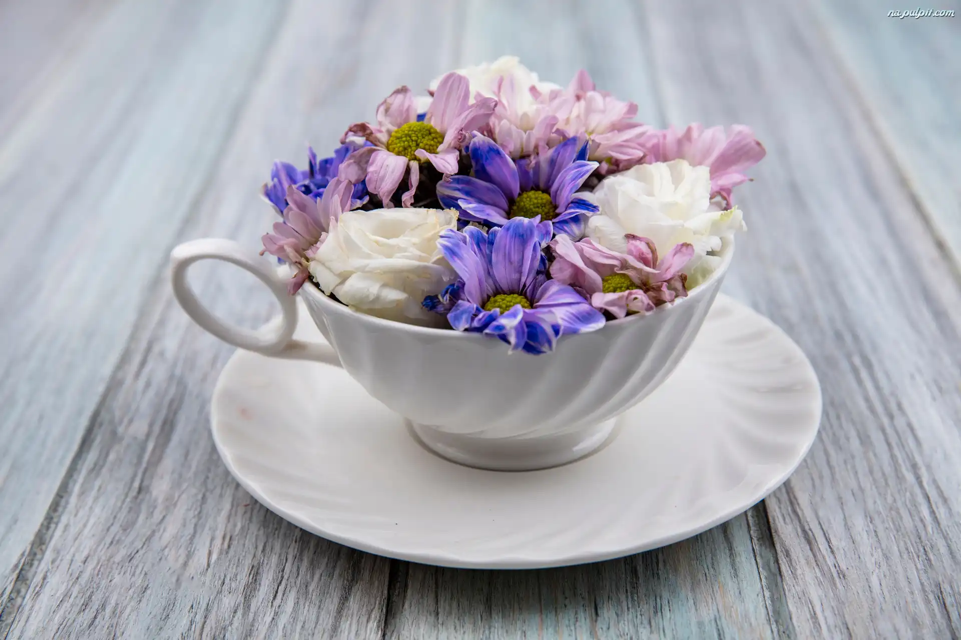 Drewniane, Spodek, Filiżanka, Kwiaty, Podłoże