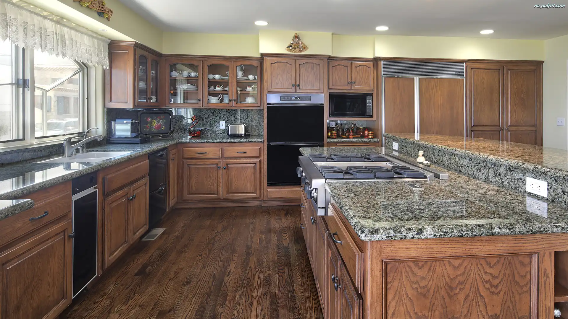 Kuchnia, Drewniane, Meble, Wyspa kuchenna Na Pulpit
