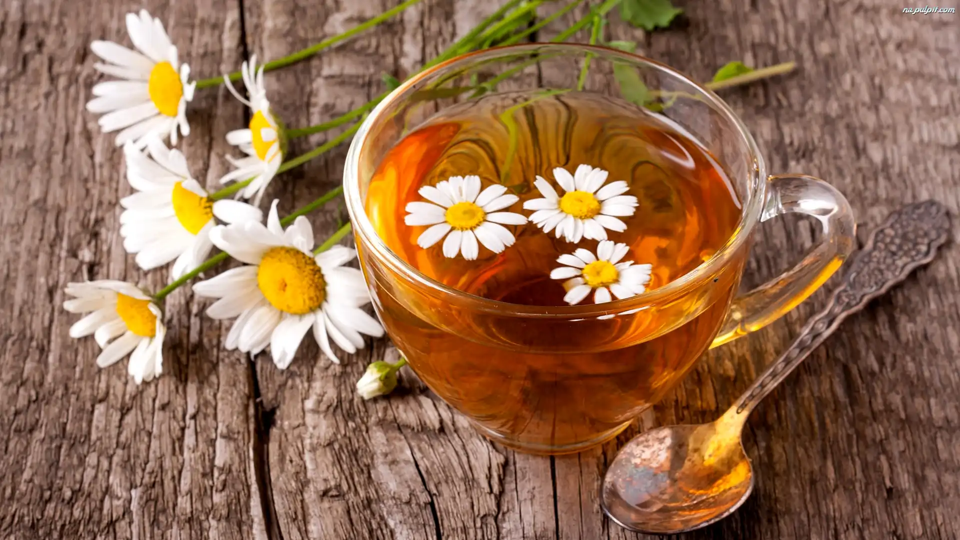 Drewno, Rumianek, Filiżanka, Herbata, Łyżeczka