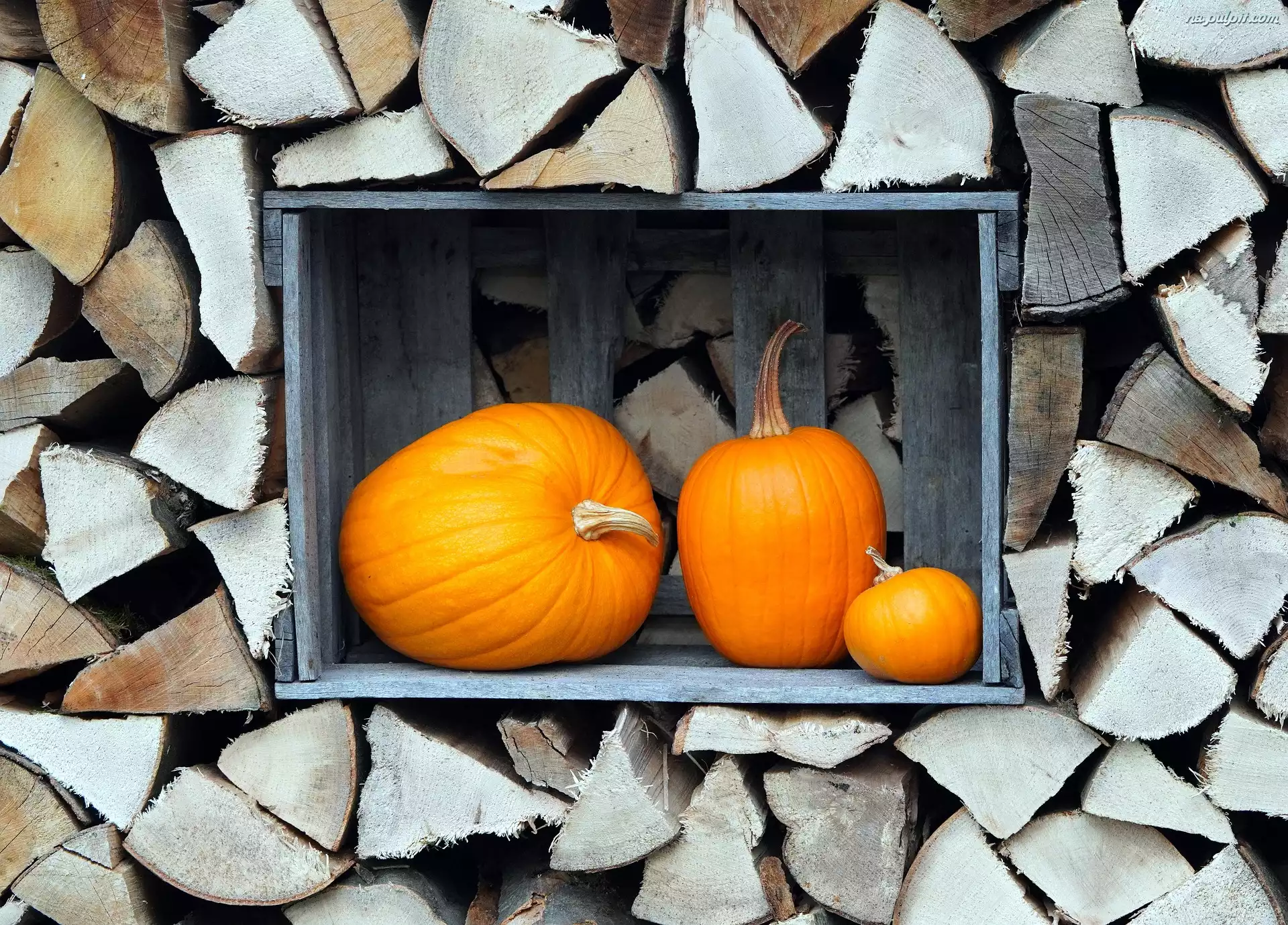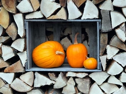 Dynie, Drewno, Pocięte, Pomarańczowe, Kloce