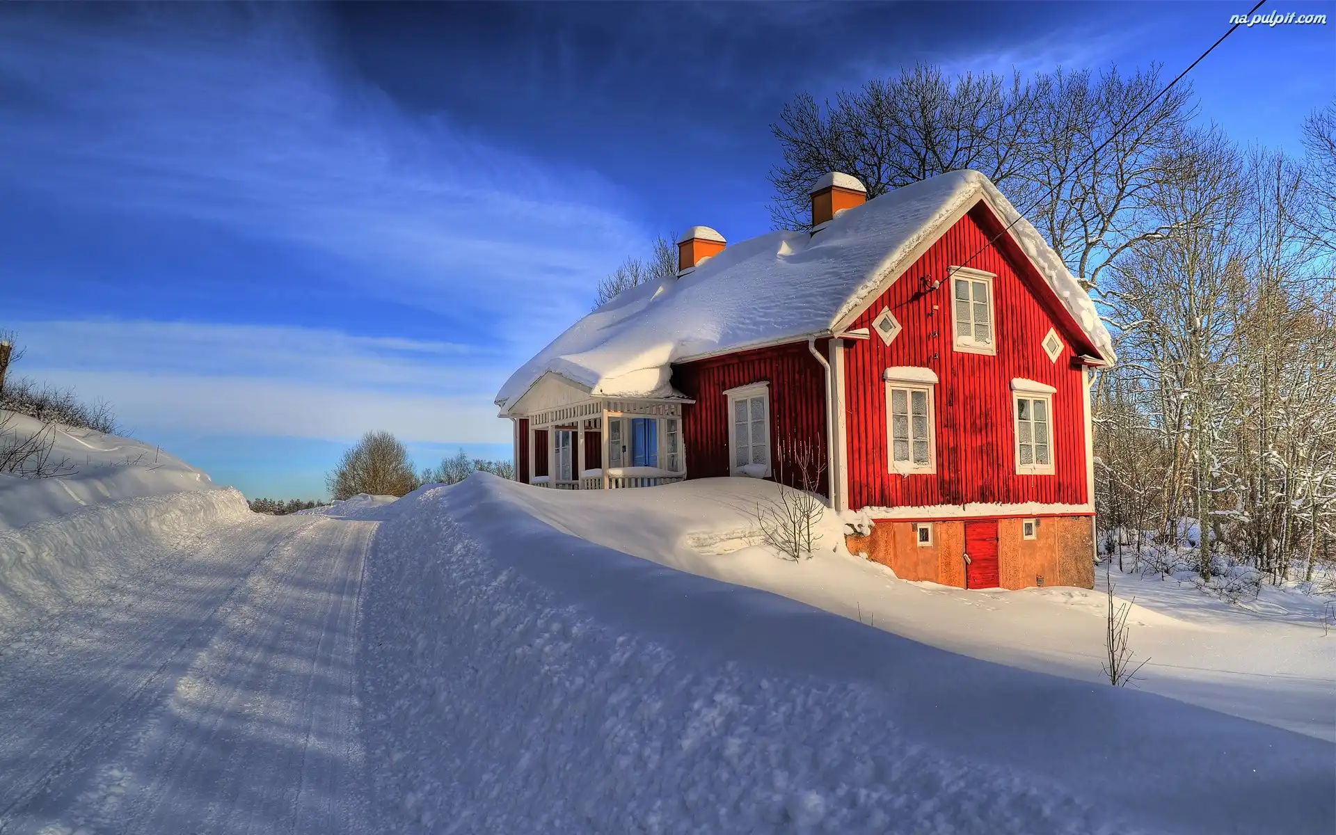 Droga, Niebo, Dom, Śnieg Na Pulpit