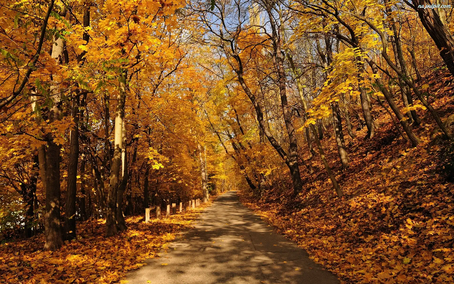Drzewa, Droga, Liście Na Pulpit