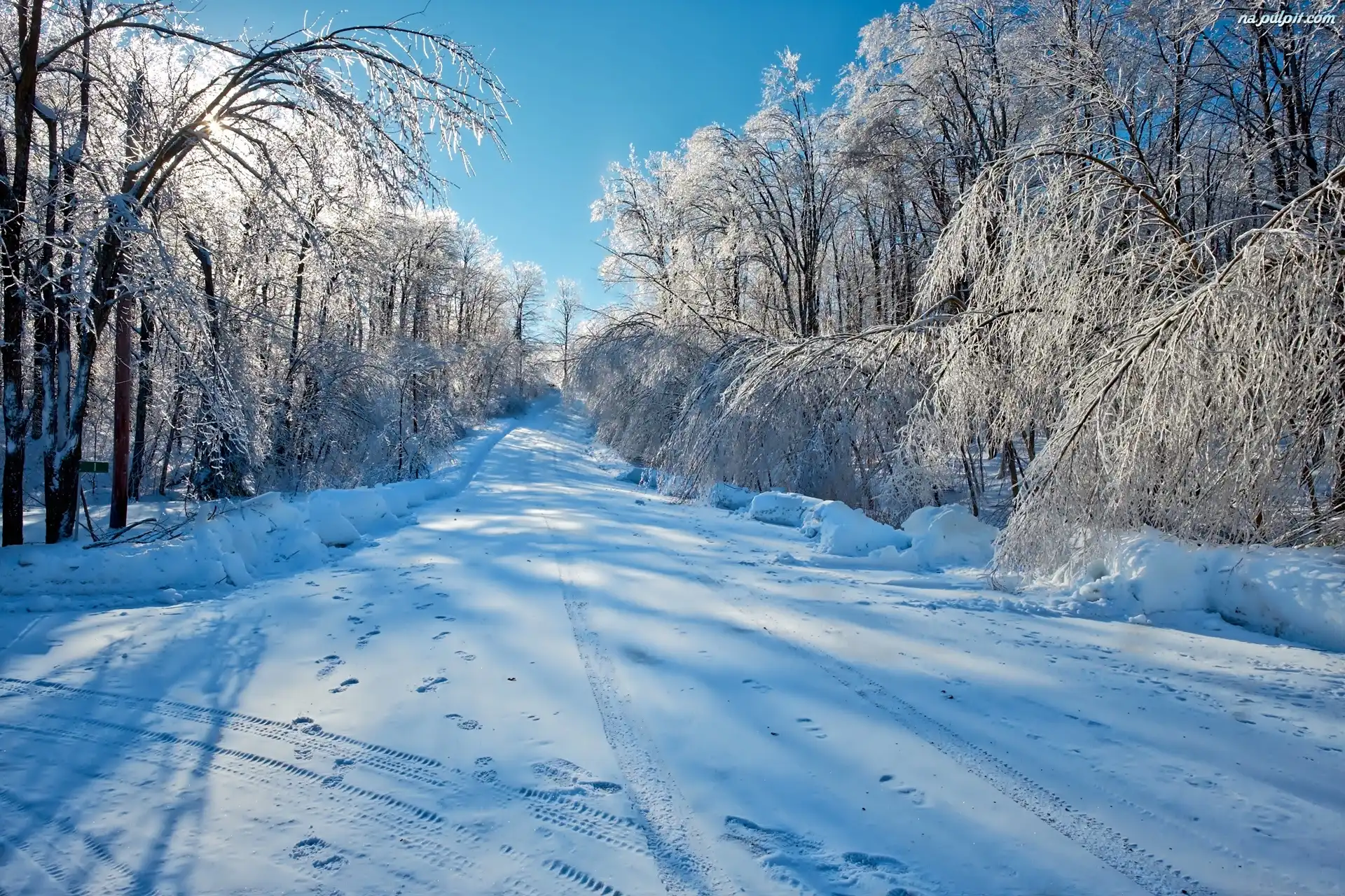 Drzewa, Droga, Ośnieżone Na Pulpit