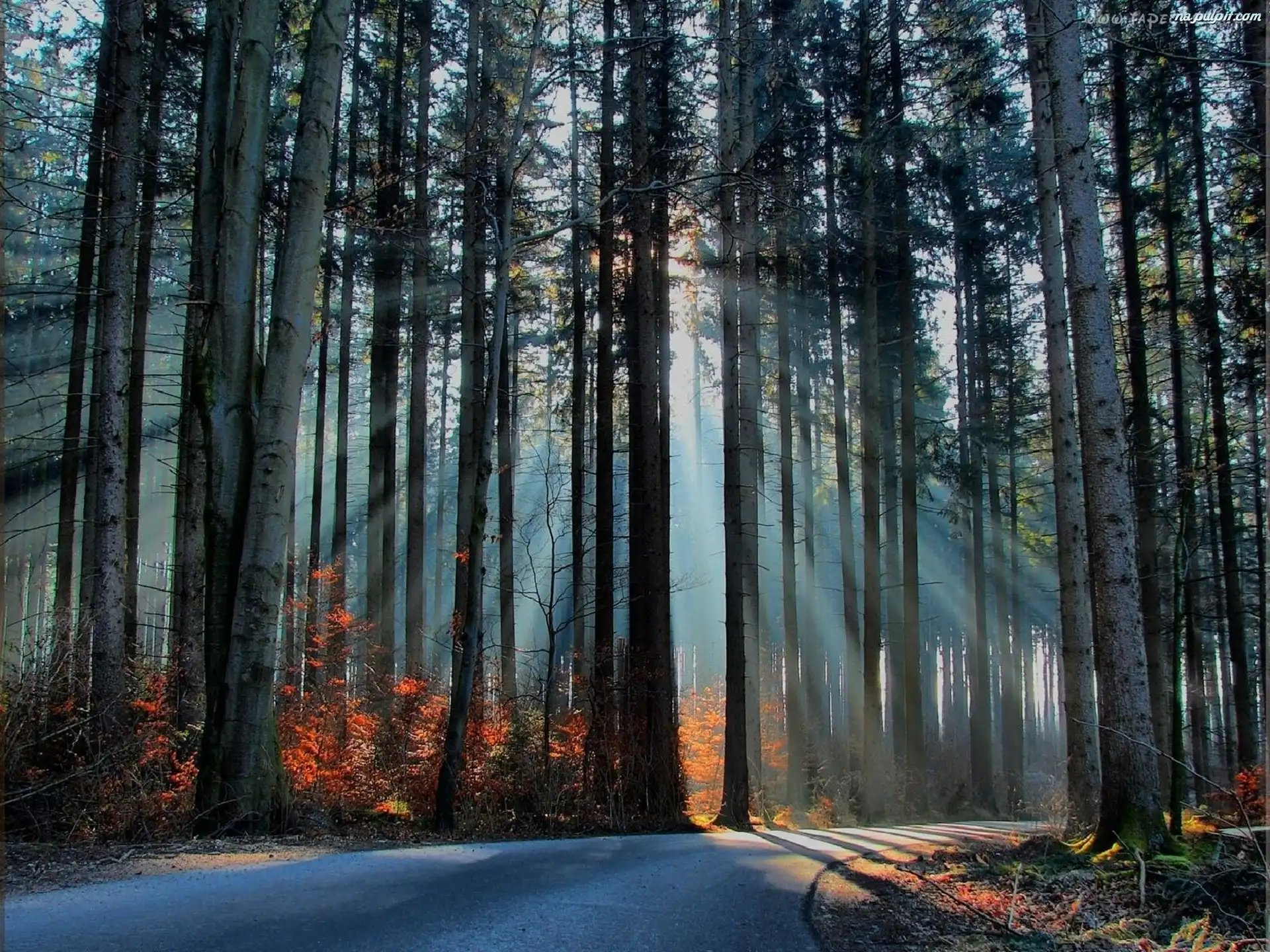Światło, Drzewa, Droga, Przebijające Na Pulpit