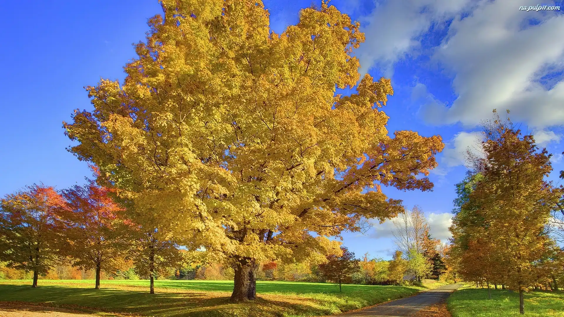 Droga, Chmurki, Jesień, Drzewa Na Pulpit